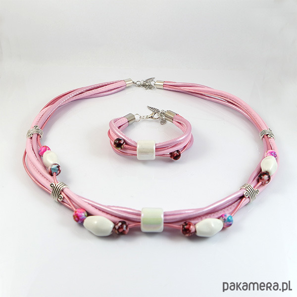 Komplet - Różowy - ceramiczne korale