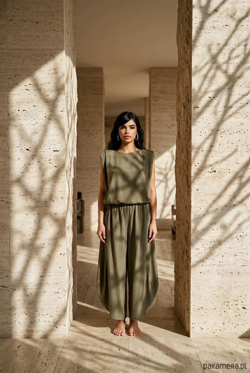 Komplet set Carmauii oliwka jedwab