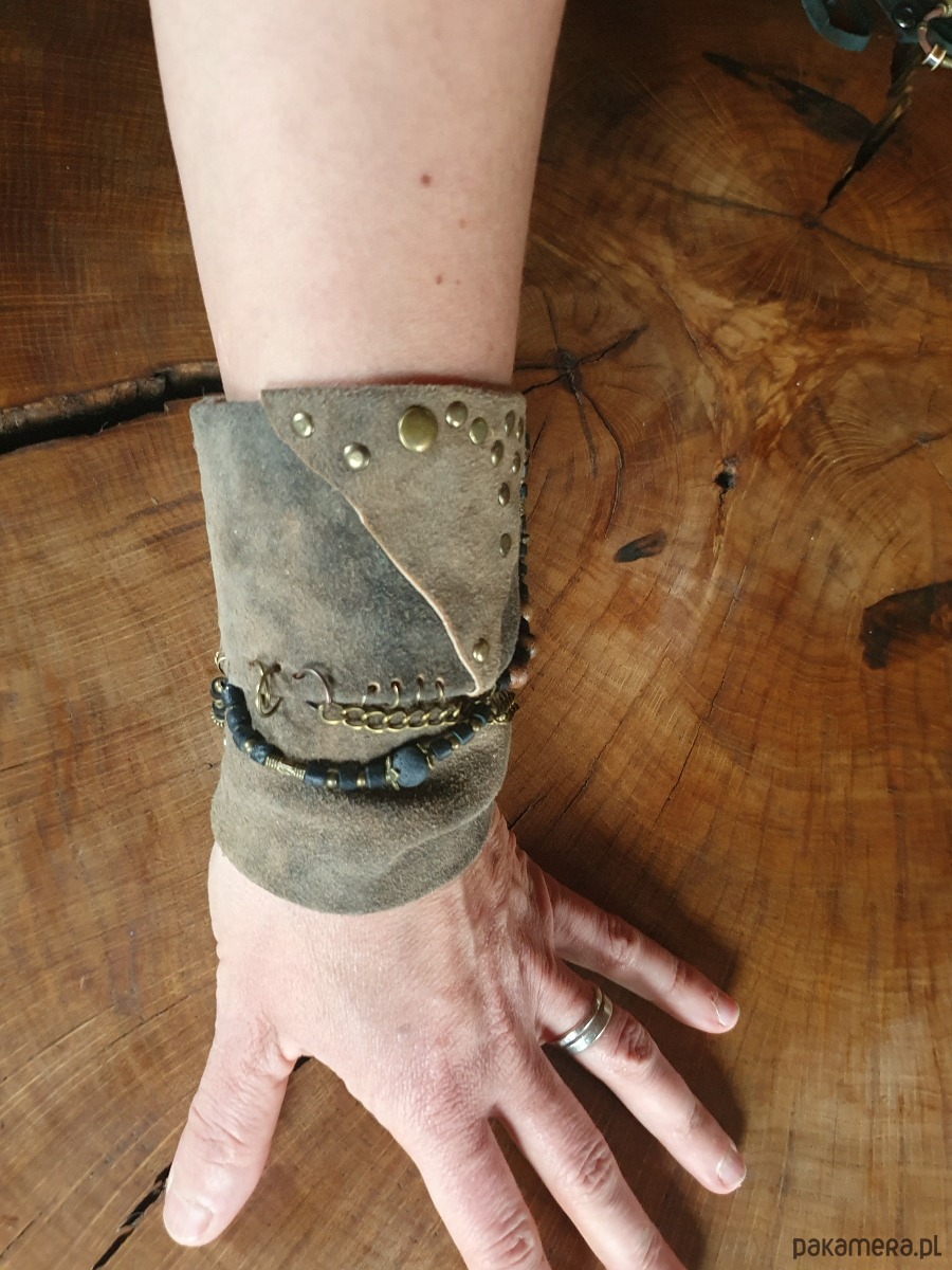 Szeroka bransoleta również ma zapięcie na napy.