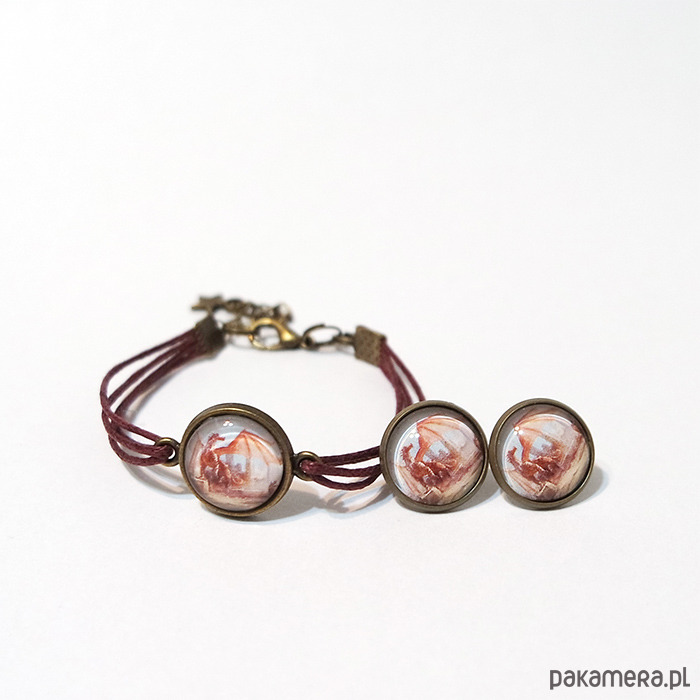 Komplet - Smok - kolczyki, bransoletka
