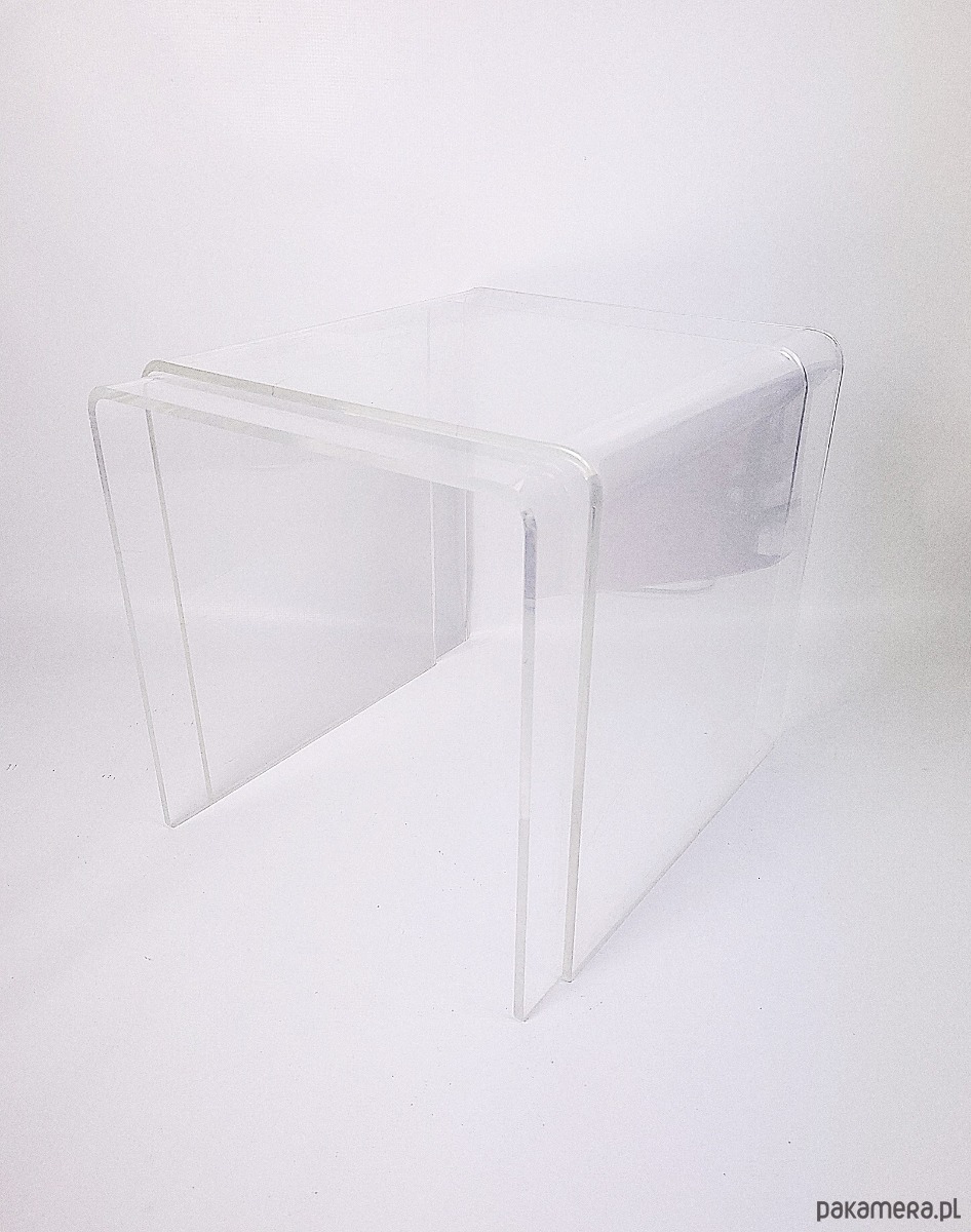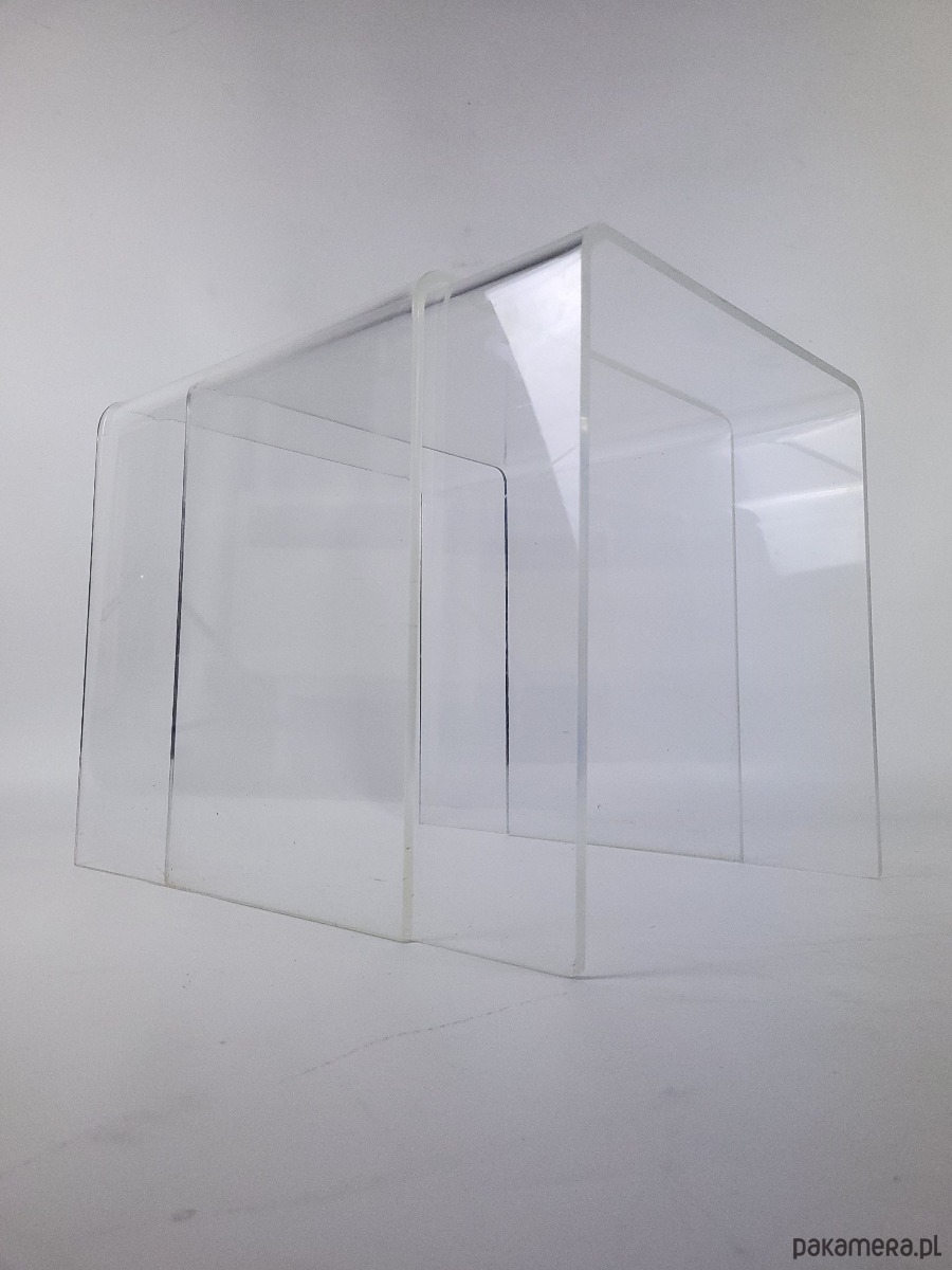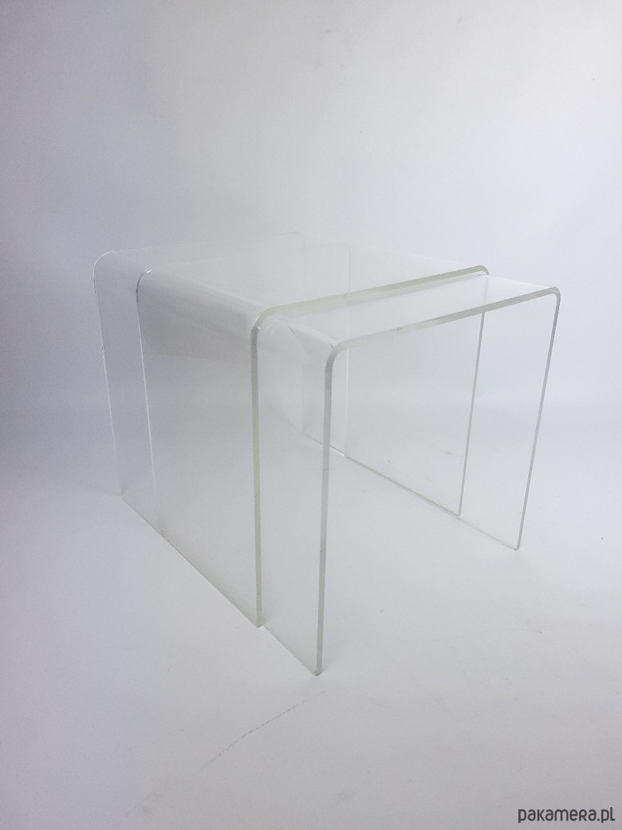 Komplet stolików wykonanych z plexi z lat 70. Stoliki w stanie dobrym posiadają niewielkie rysy.