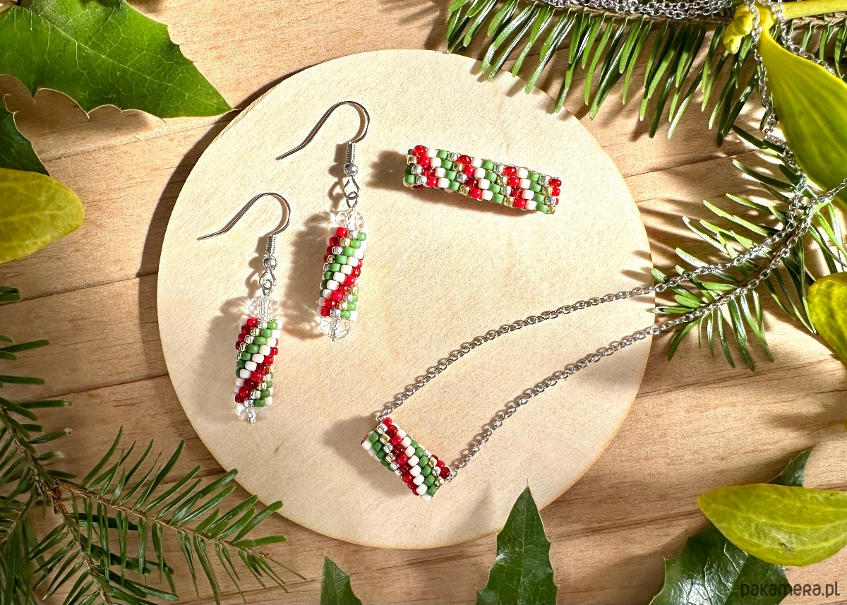 Piękna, minimalistyczna świąteczna biżuteria w bożonarodzeniowych kolorach.