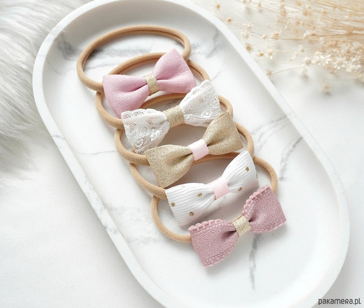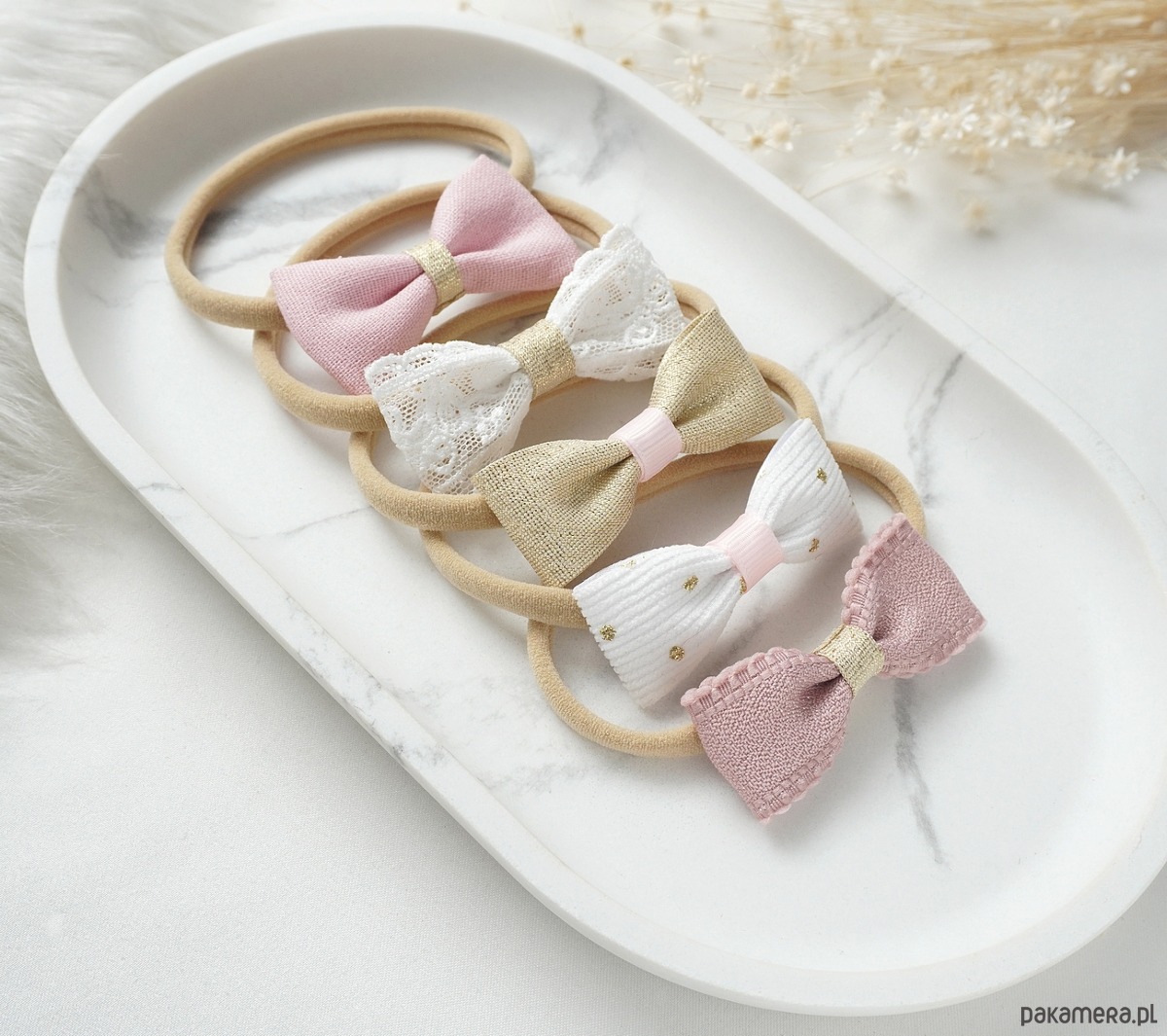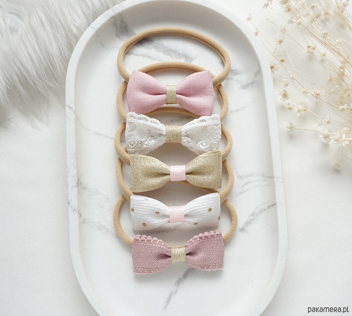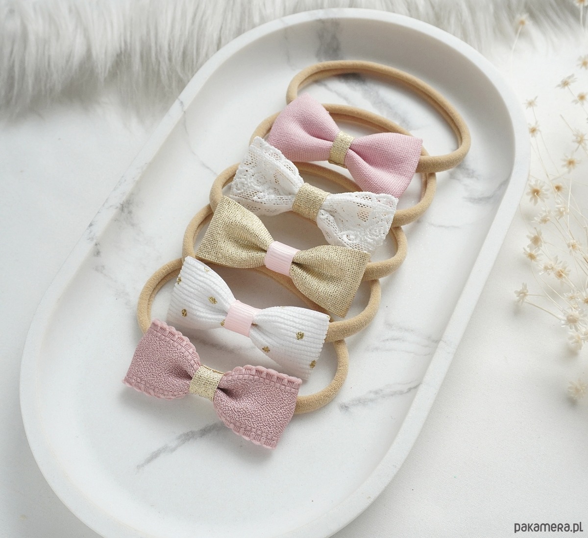 Komplet świątecznych opasek dla niemowlaka 5 kokardek OS06K