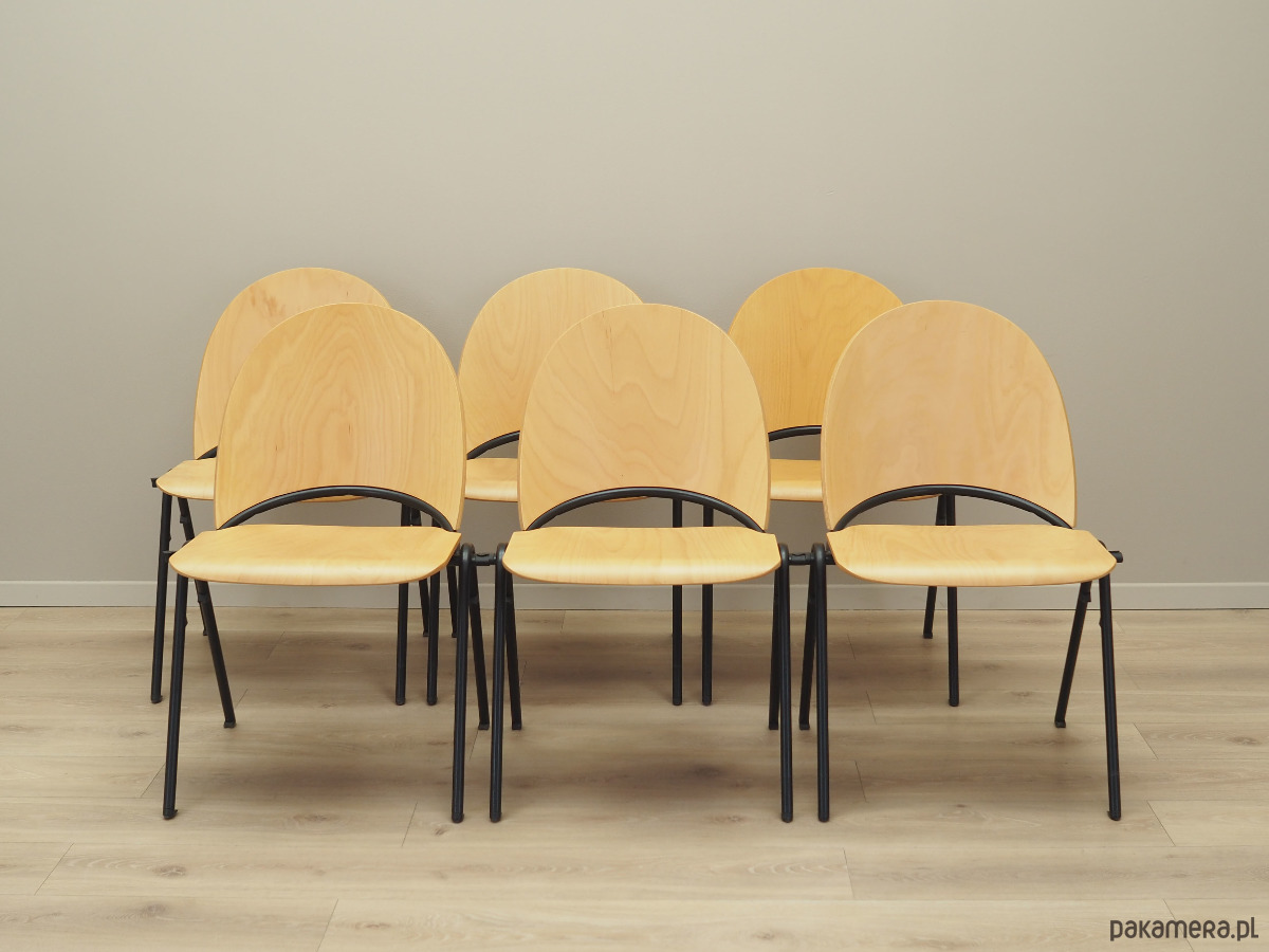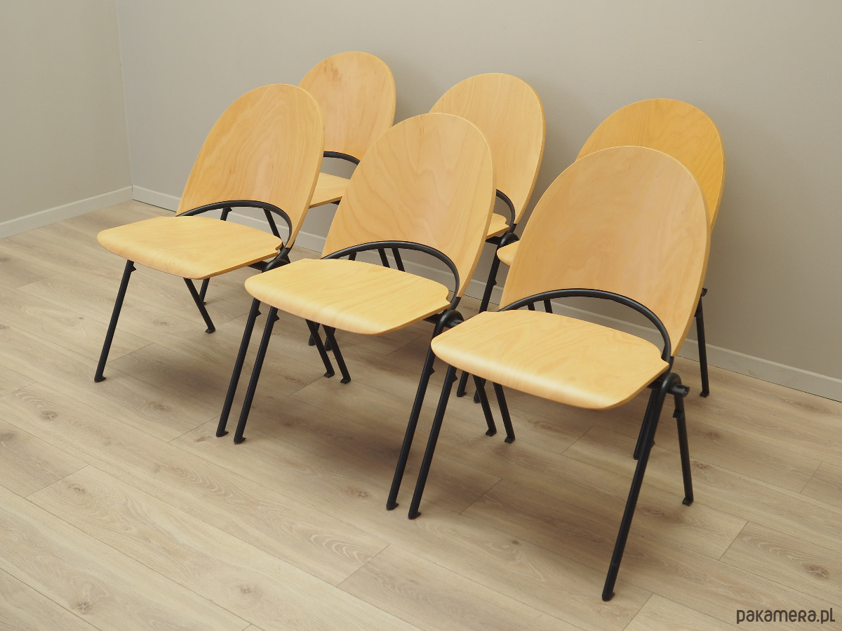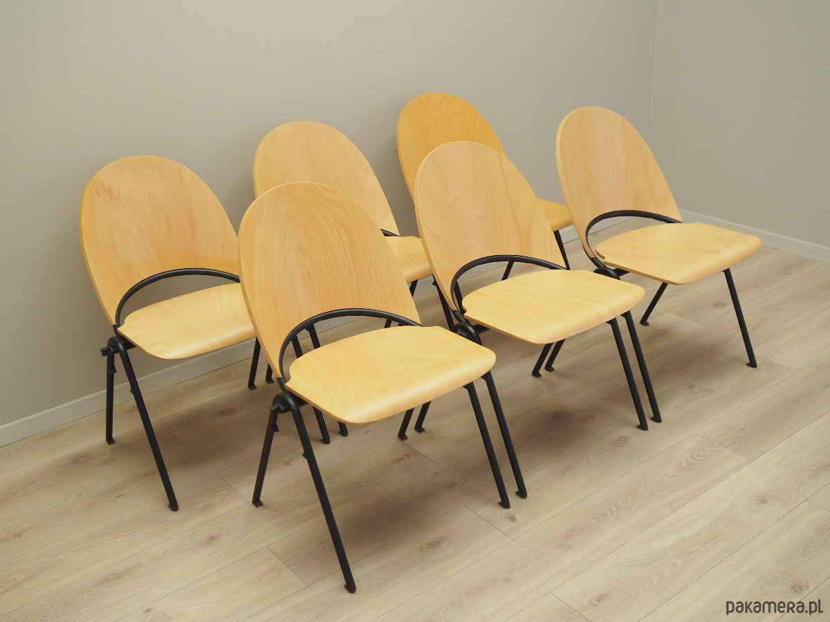 Komplet sześciu krzeseł wykonany został w latach 70-tych, produkcja duńska.