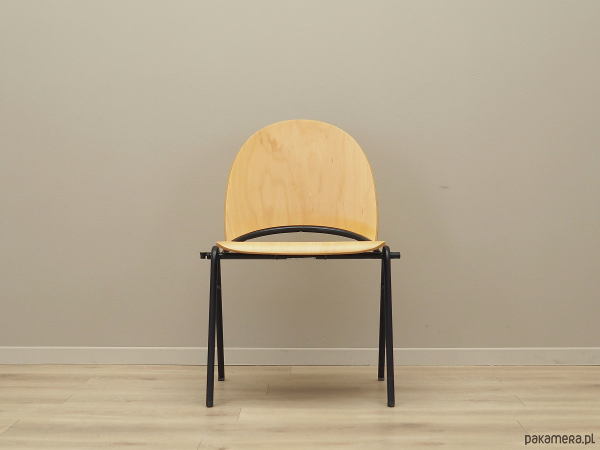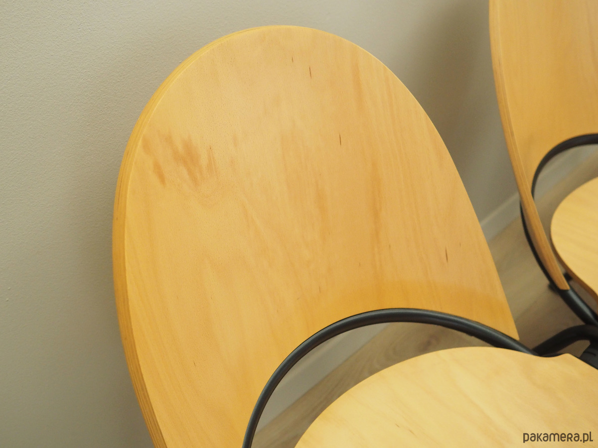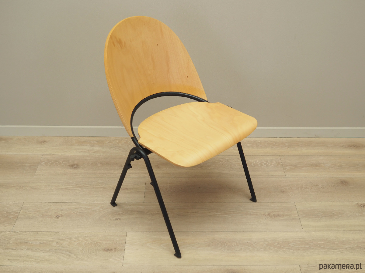 Konstrukcja wykonana jest ze sklejki. Drewno po odświeżeniu. Nogi wykonane z metalu. Dodatkowym atutem jest możliwość łączenia krzeseł.