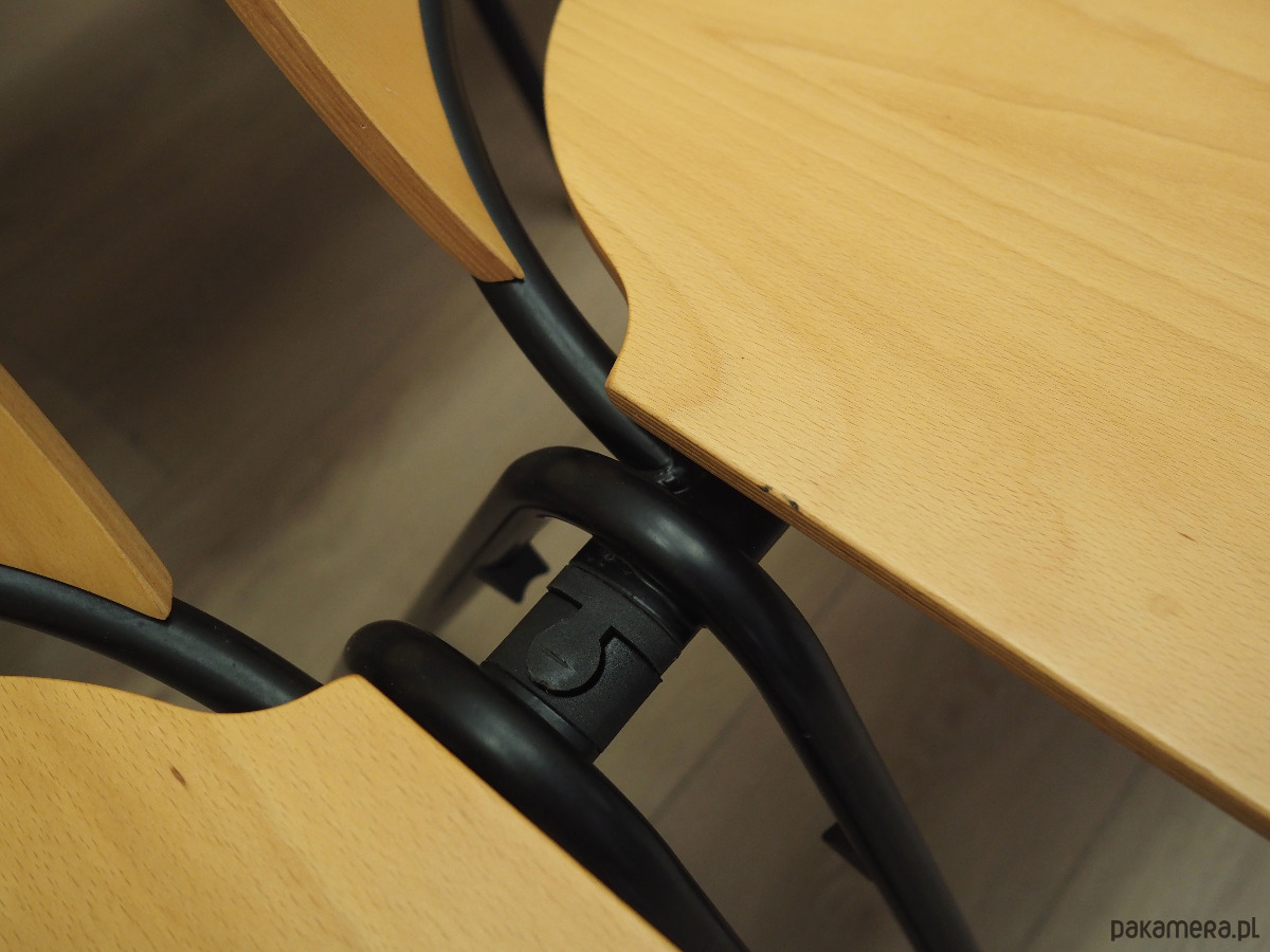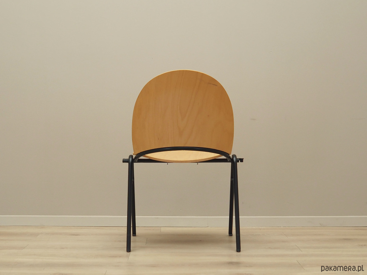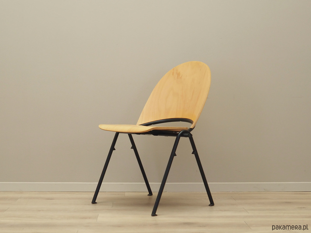 Konstrukcja wykonana jest ze sklejki. Drewno po odświeżeniu. Nogi wykonane z metalu. Dodatkowym atutem jest możliwość łączenia krzeseł.