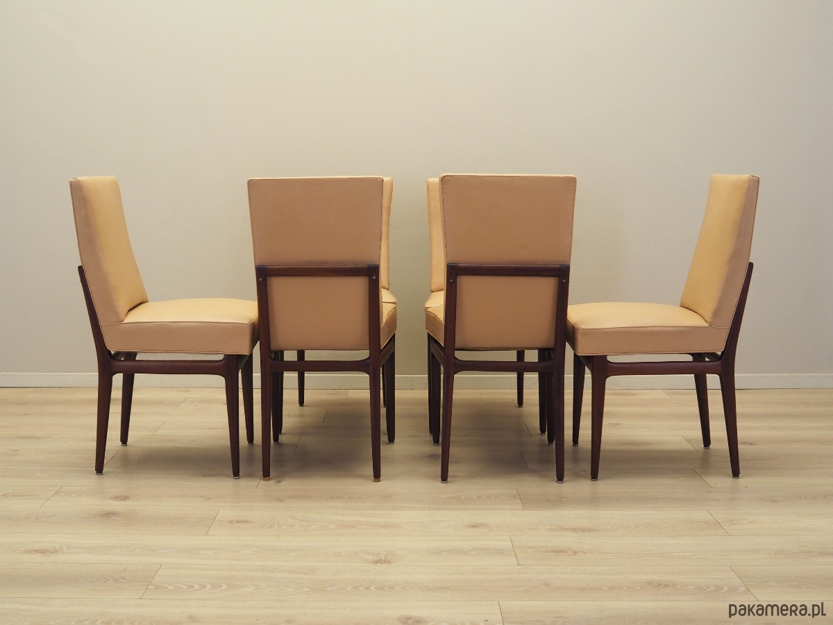 Komplet sześciu krzeseł został wykonany w latach 60-tych, produkcja włoska.