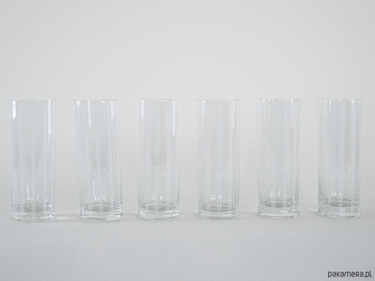 Zestaw sześciu szklanek wykonany został w latach 60-tych, produkcja włoska.