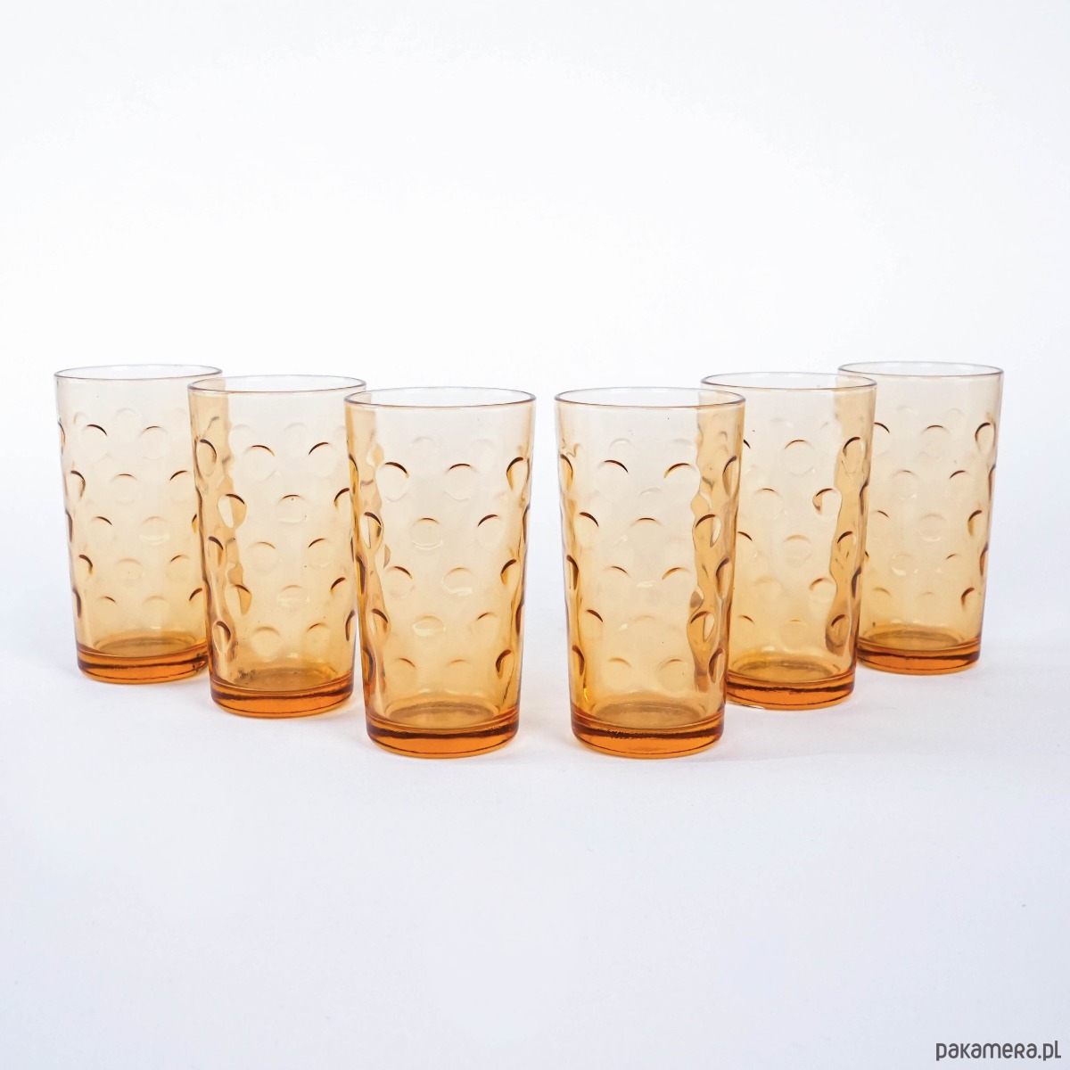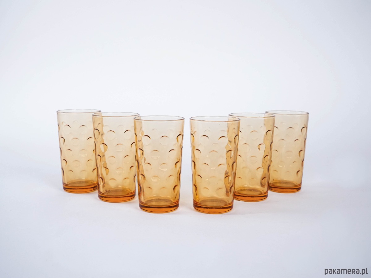 Komplet szklanek bursztynowych, włoski design, lata 70, produkcja: Włochy