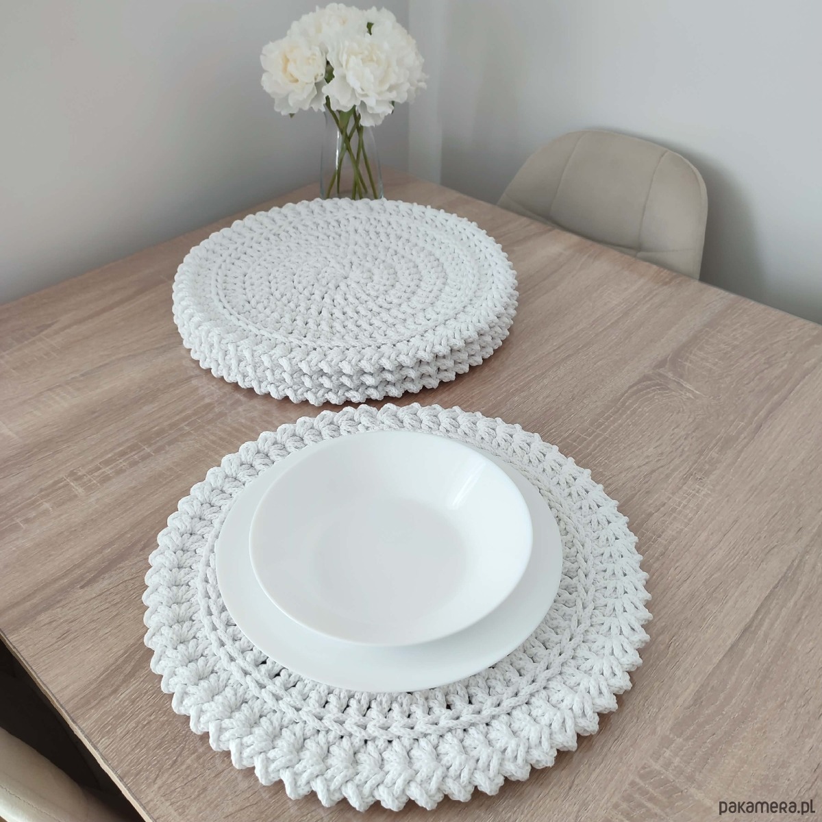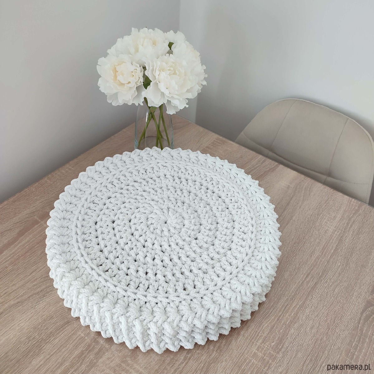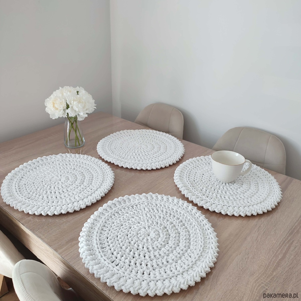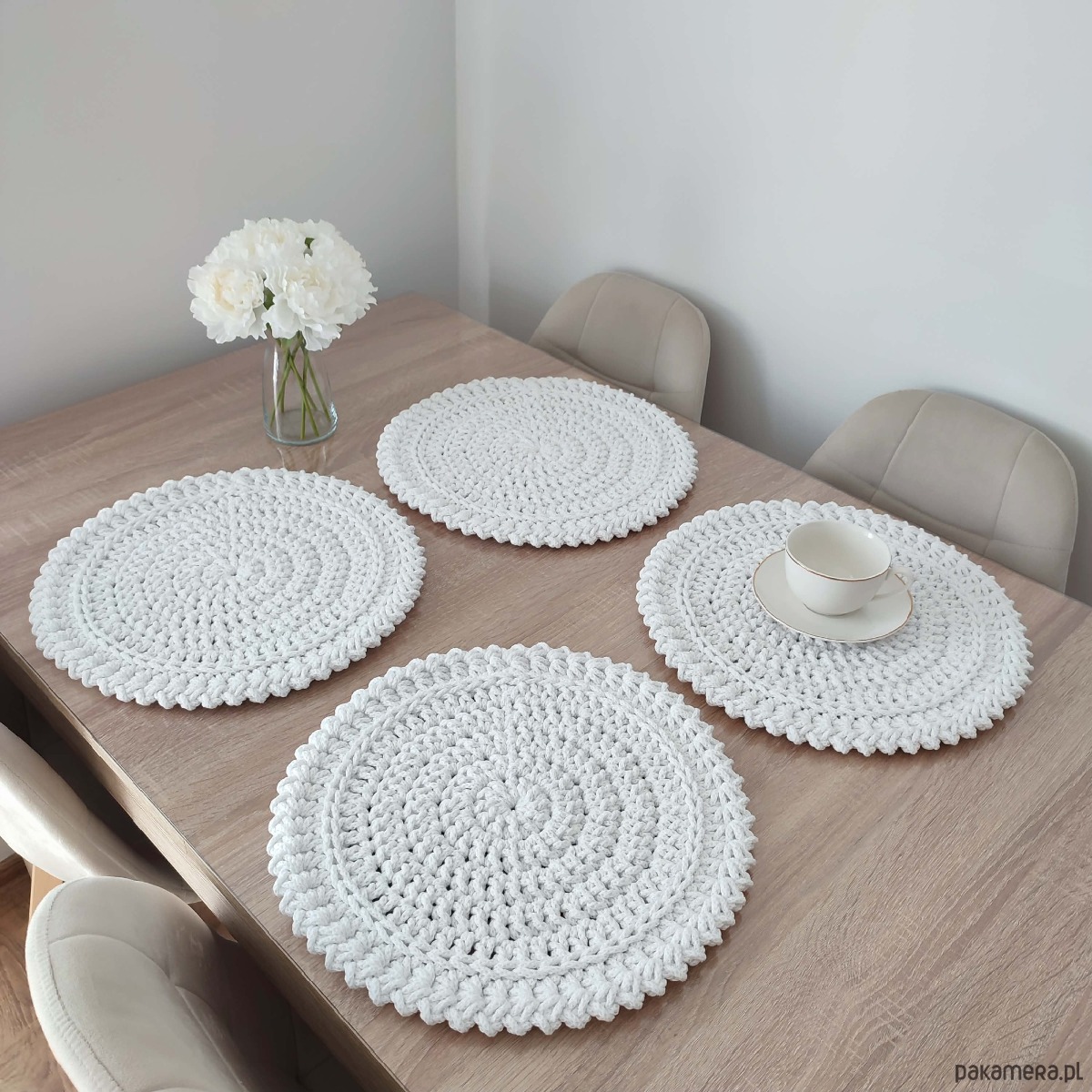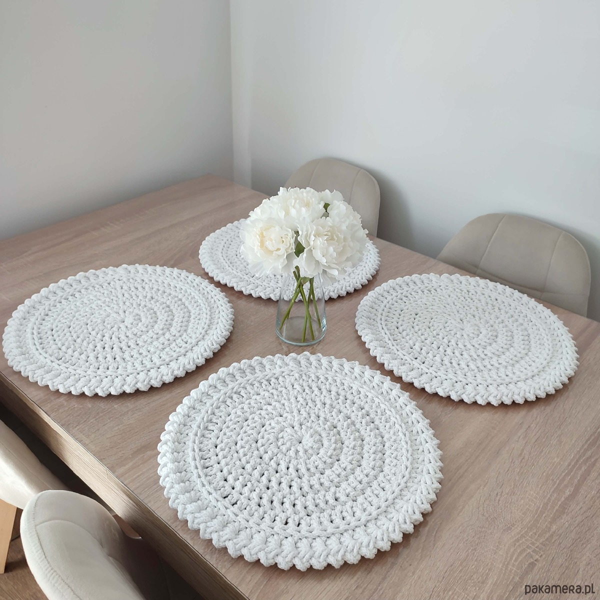Komplet szydełkowych podkładek pod talerze 4szt-38cm