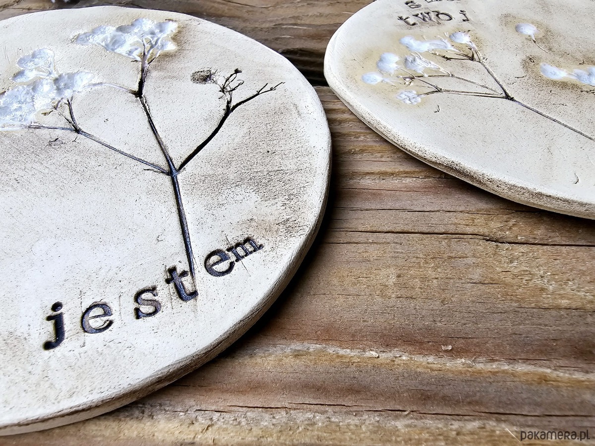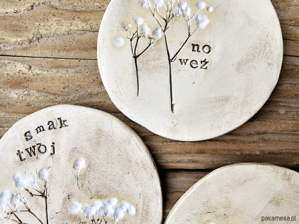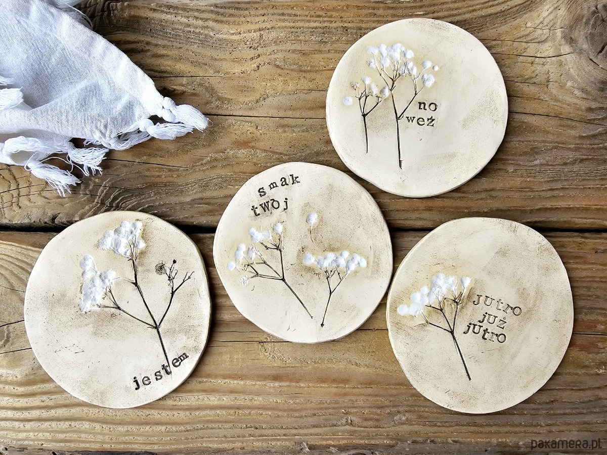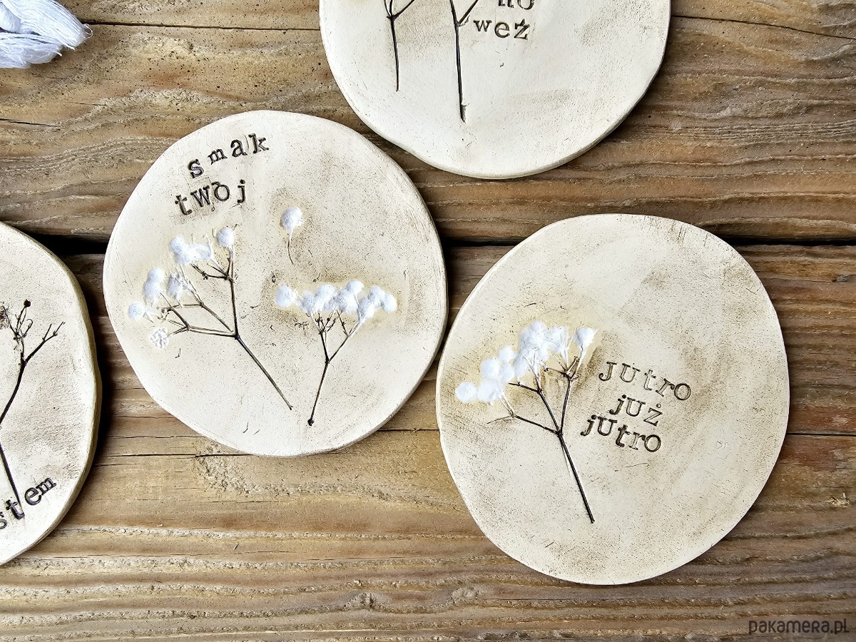 Komplet 4 talerzyków ceramicznych z napisami
