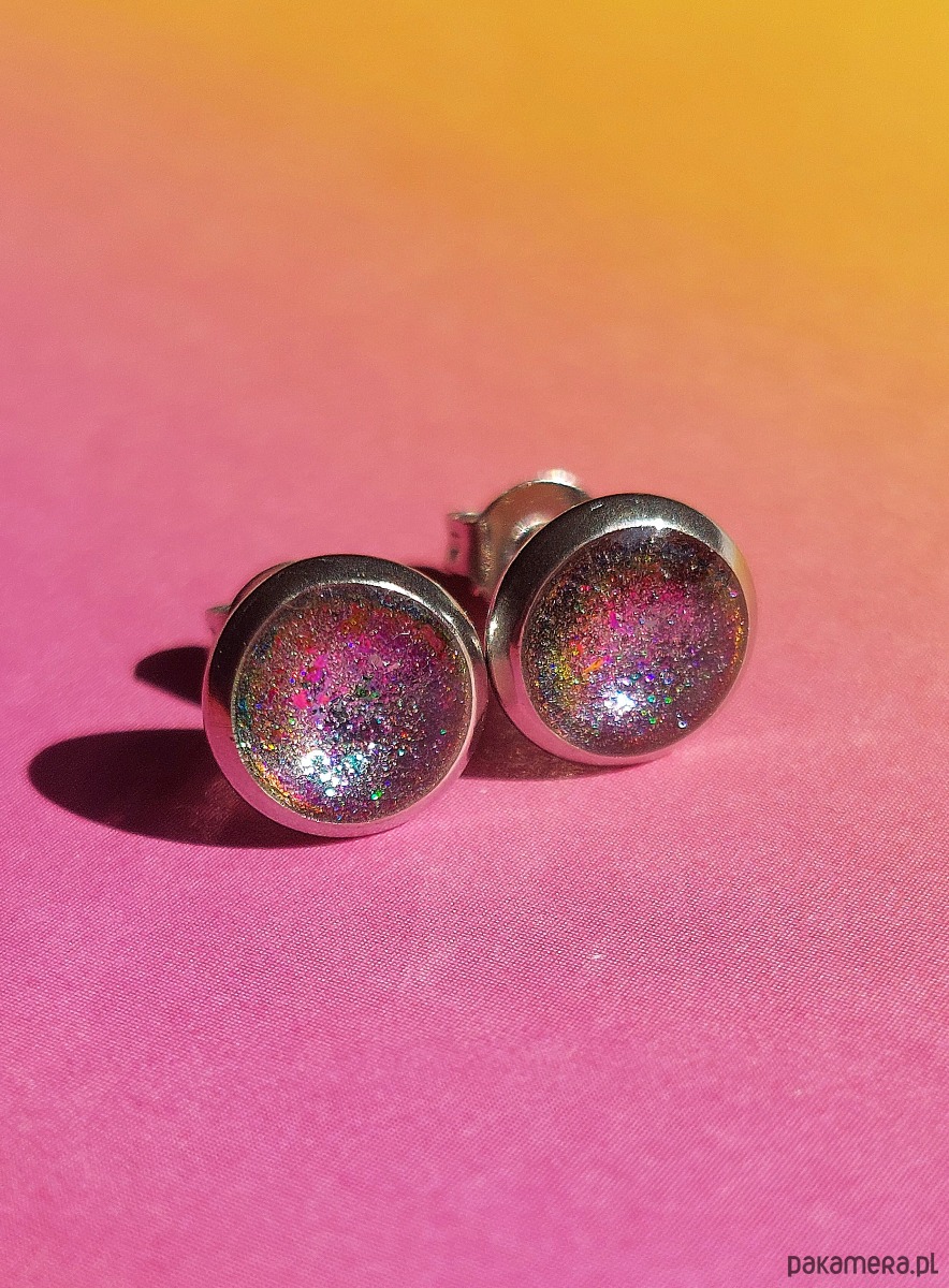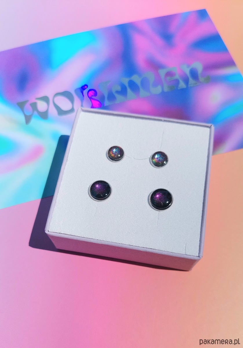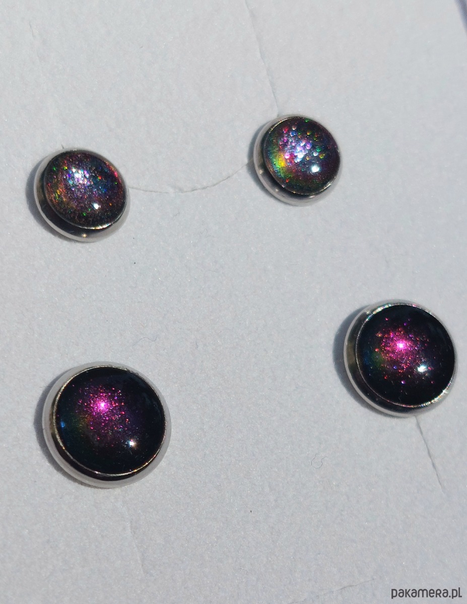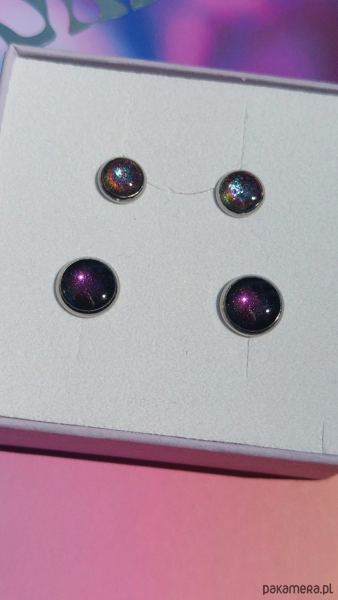 Zestaw dwóch par kolczyków sztyftów mieniących się różnymi kolorami w zależności od kąta padania światła ✨️