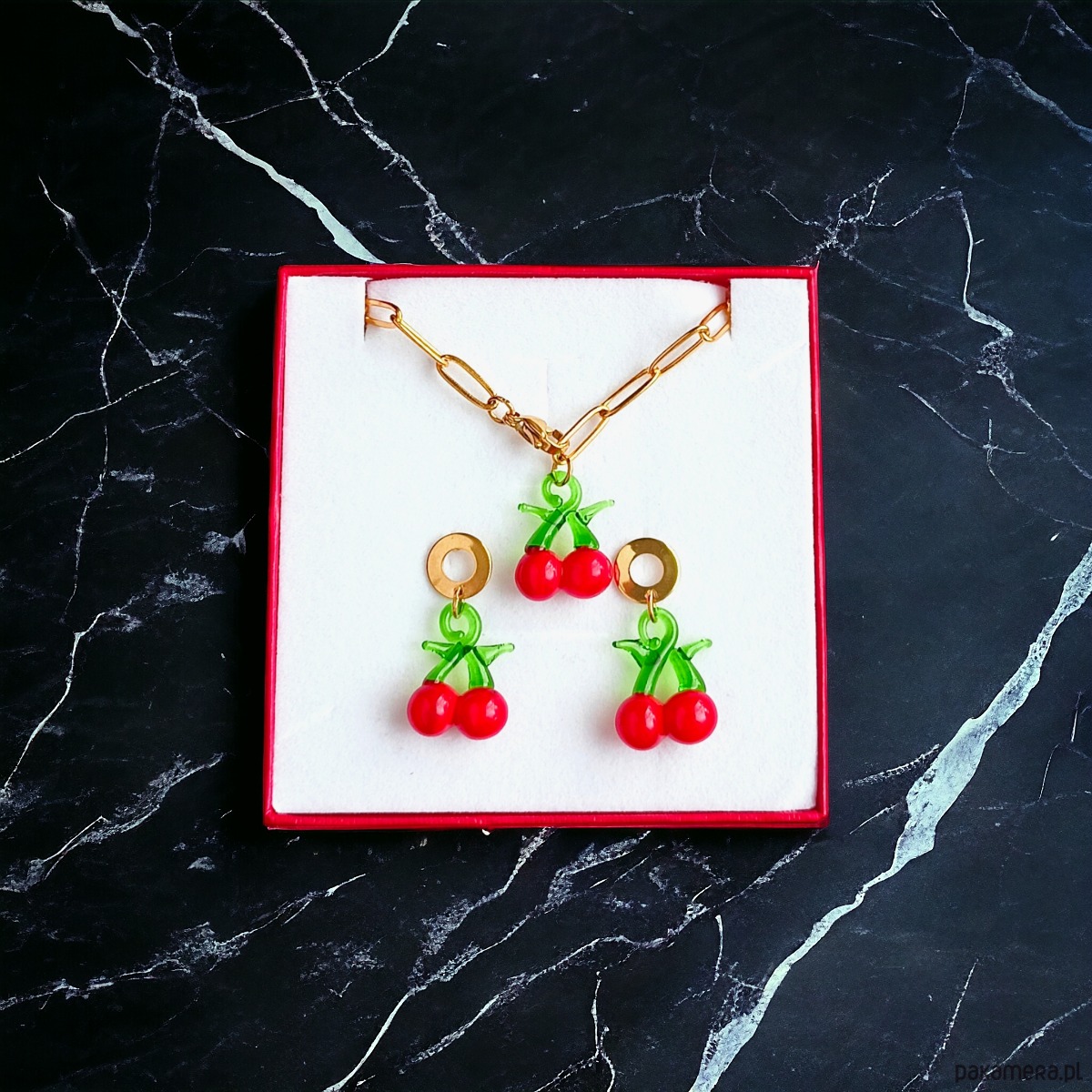 Wisienki wykonywane są ręcznie w technice lampwork - nie ma dwóch takich samych elementów - wszystkie wisienki są wyjątkowe.