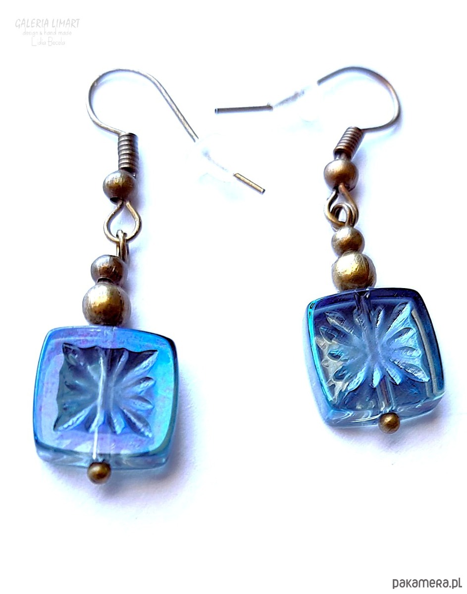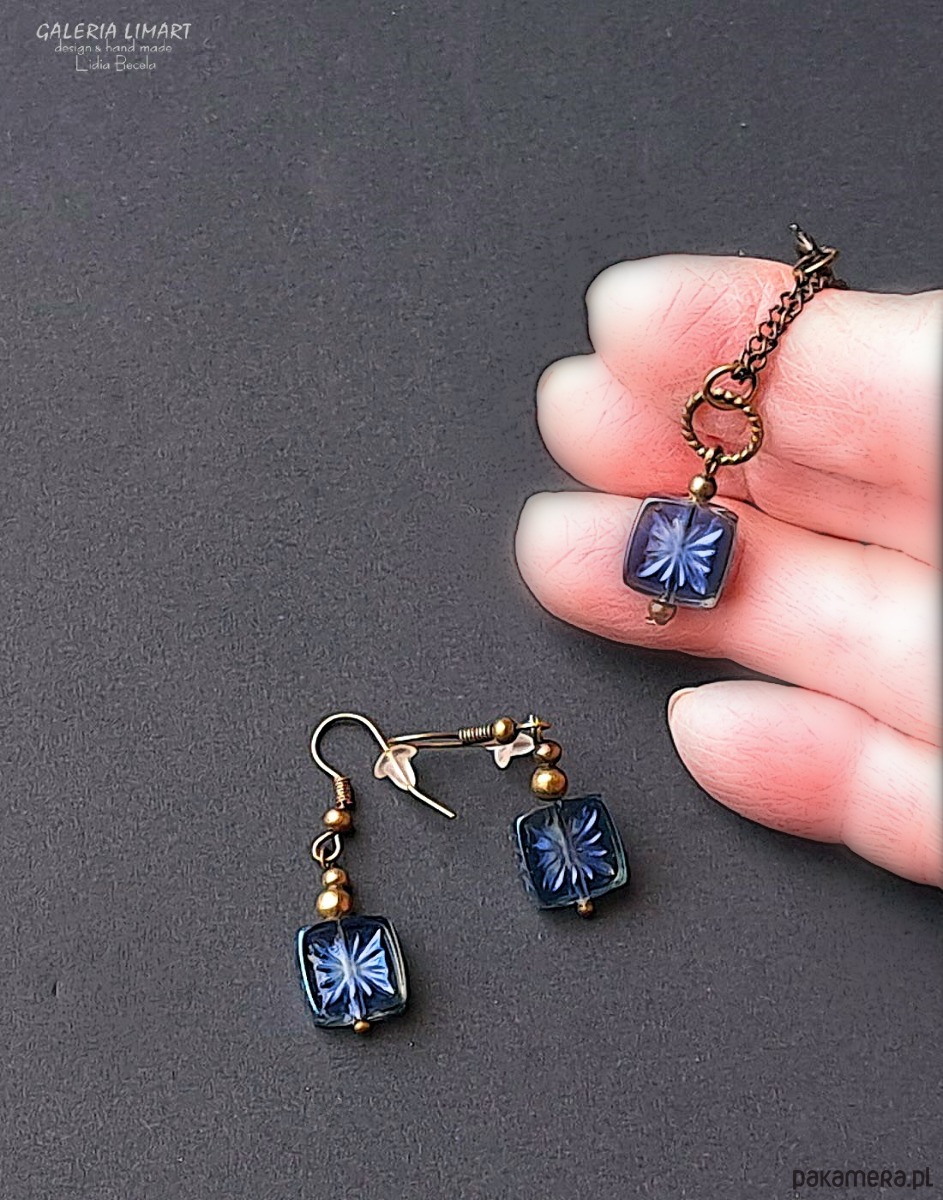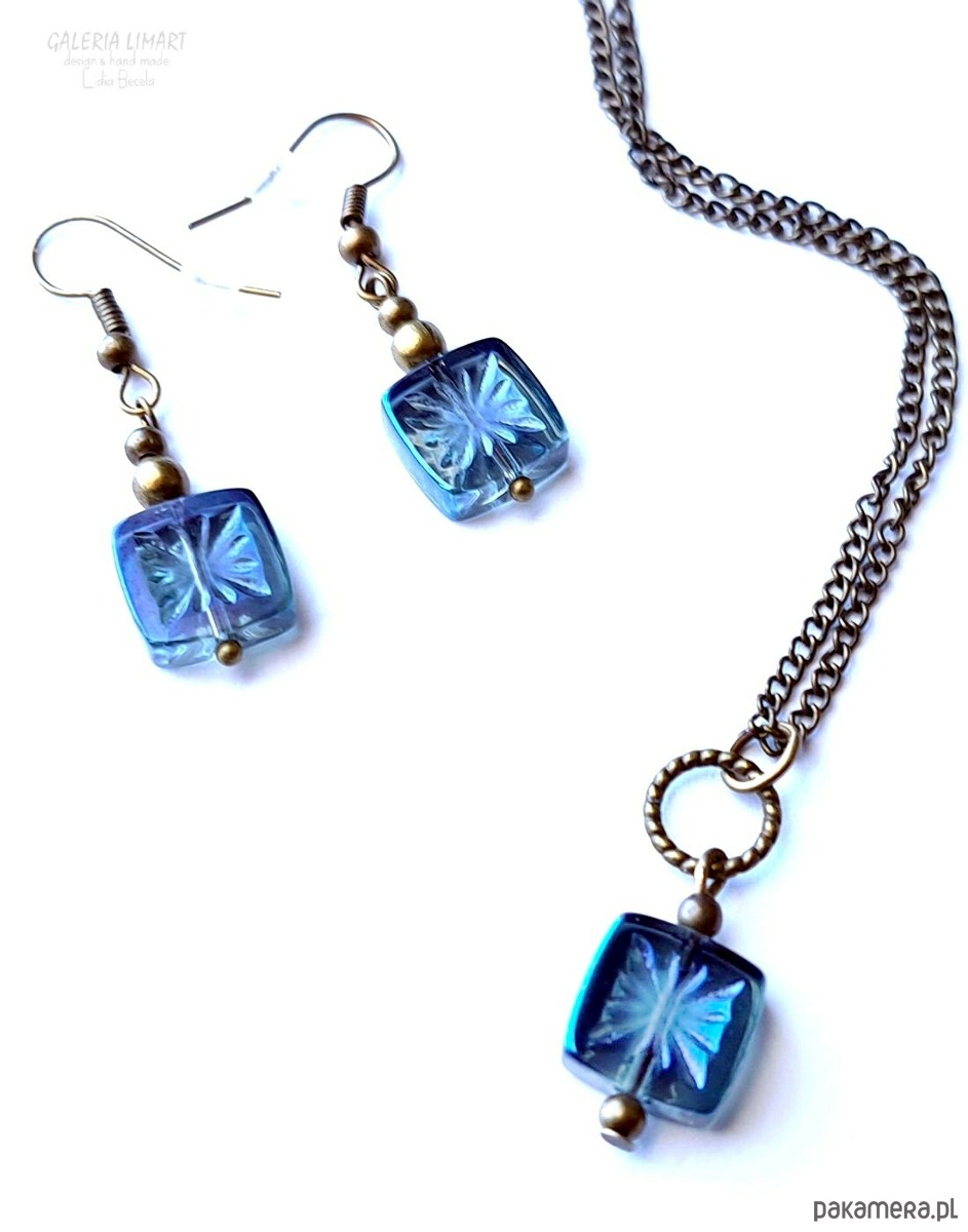 Komplet wisiorek i kolczyki w błękicie czeskie szkło miły prezent