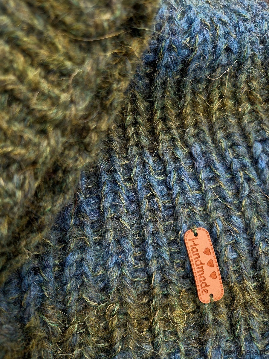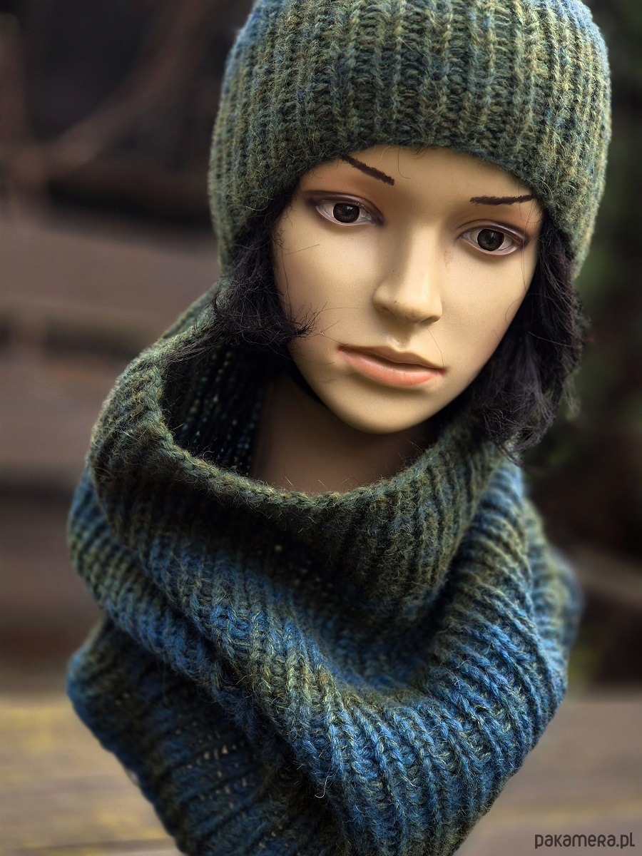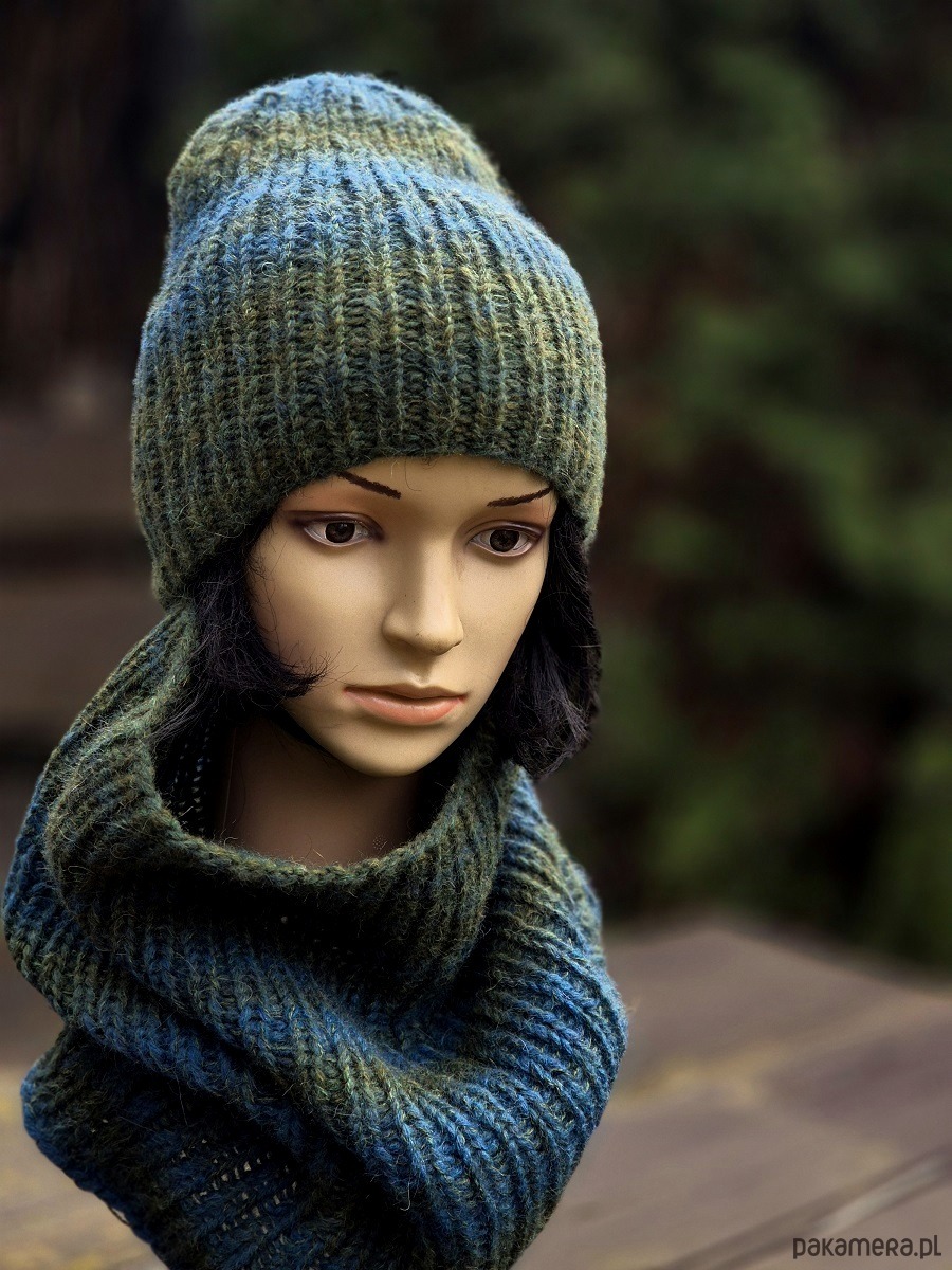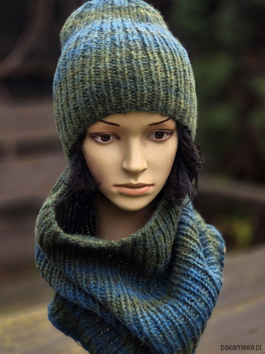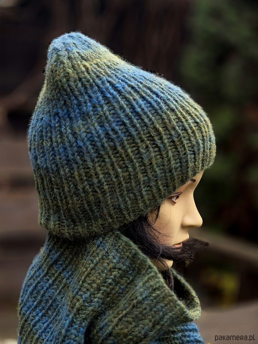 Ciepły, mięciutki i bardzo przyjemny w dotyku komplet wykonany ręcznie na drutach z rewelacyjnej włóczki prod.włoskiej ( 56% alpaka, 24% wełna, 20% poliamid) połączonej z cieniutką nitką merino.