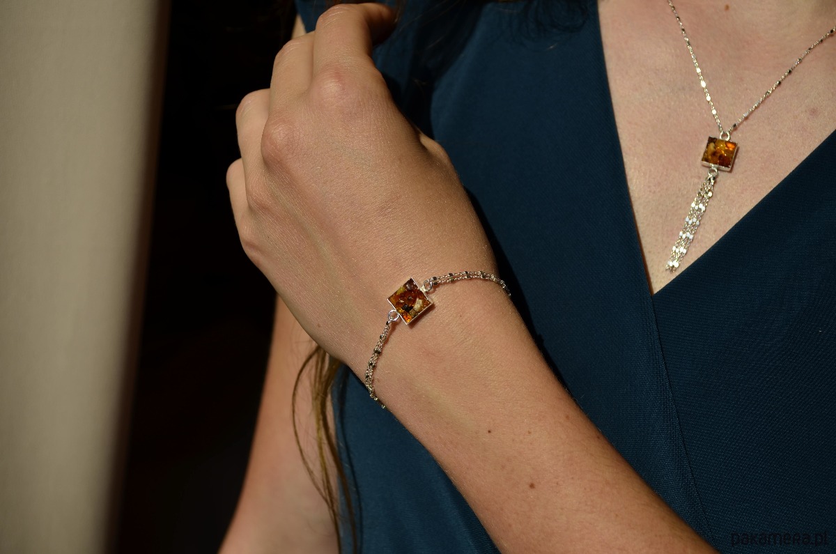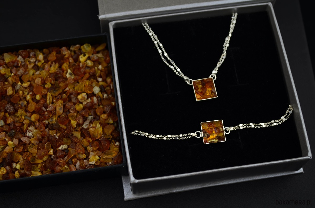Minimalistyczny komplet biżuterii, w której naturalne bursztyny bałtyckie zostały zamknięte w niedużych srebrnych oprawkach. Delikatna bransoletka i krótki naszyjnik to idealny dodatek do codziennych stylizacji, który subtelnie będzie podkreślał Twój strój. Ozdobny srebrny łańcuszek i drobne kawałki bursztynu podczas noszenia cały czas dyskretnie połyskują, jakby chciały powiedzieć "spójrz na mnie". Elegancki prezent dla mamy, przyjaciółki, a może dla samej siebie? Daj się oczarować prawdziwemu bursztynowi i szlachetnemu srebru!
