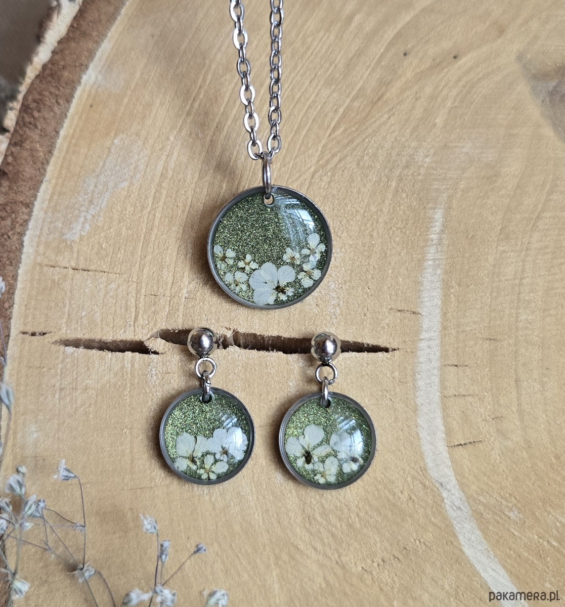 Oferuję Państwu unikalną biżuterię. Zawieszka jest wykonana z suszonych kwiatów i żywicy epoksydowej. Biżuteria jest wspaniałym i oryginalnym prezentem na lata. Do utrwalenia roślin stosuję żywicę jubilerską najwyższej jakości.
