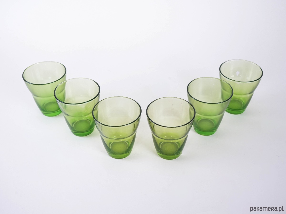 Komplet zielonych szklanek, włoski design, lata 80, produkcja: Włochy