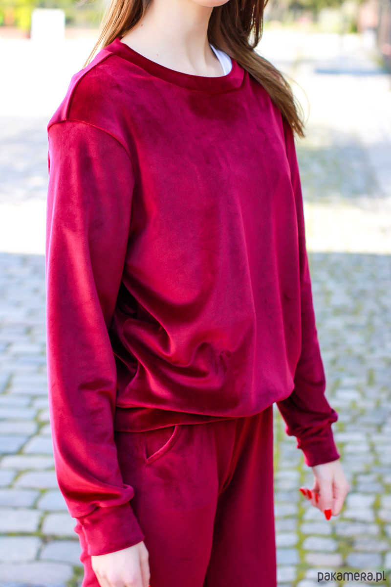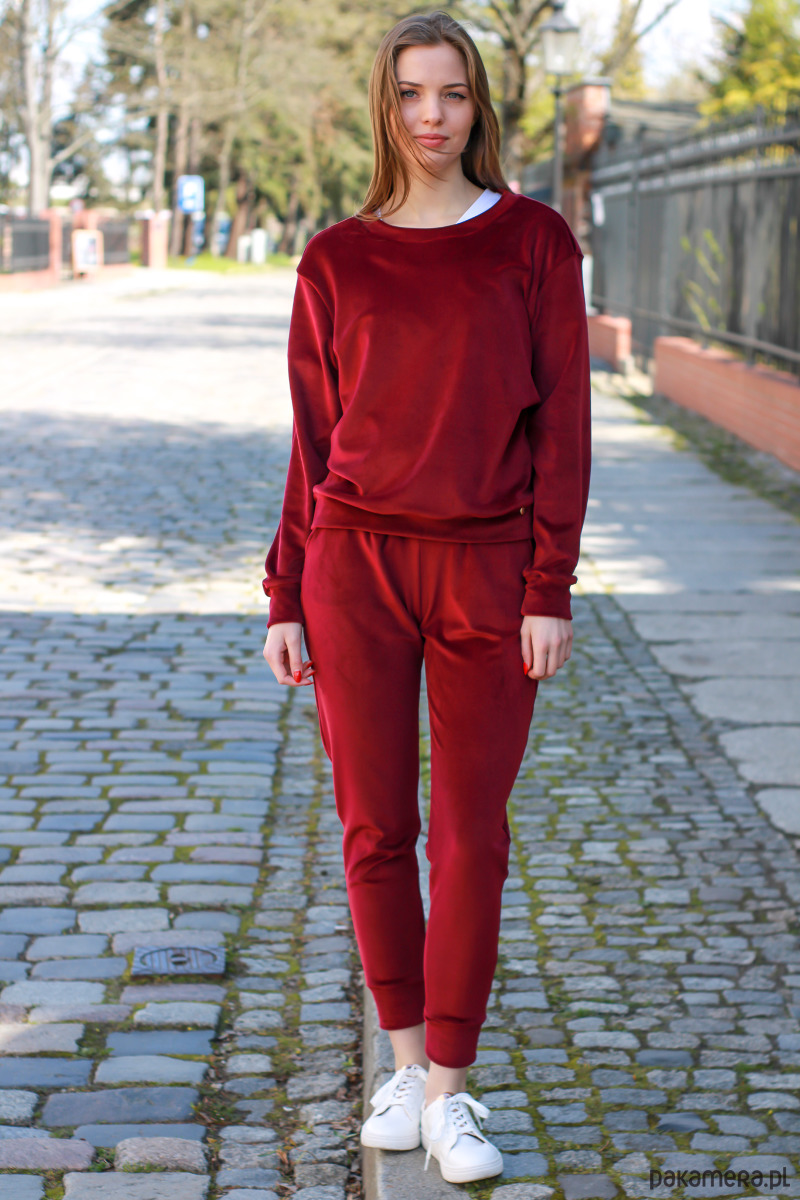 Nowoczesny komplet welurowy składa się z bluzy dresowej o luźnym kroju oraz spodni dresowych. Bluza jest bardzo przyjemna dla ciała i poczujesz się w niej niezwykle komfortowo. Dekolt, rękawy oraz dół bluzy zostały wykończone ściągaczem z weluru. Spodnie dresowe lekko dopasowane do sylwetki znakomicie wyszczuplają nogi. Spodnie uszyte są z mięciutkiego bawełnianego weluru. Spodnie posiadają praktyczne kieszenie, w pasie jest guma, a nogawki wykończone ściągaczem. Całość, bluza ze spodniami marki LONA tworzą elegancki sportowy look. Wszystkie nasze ubrania szyjemy we własnej szwalni w Poznaniu.