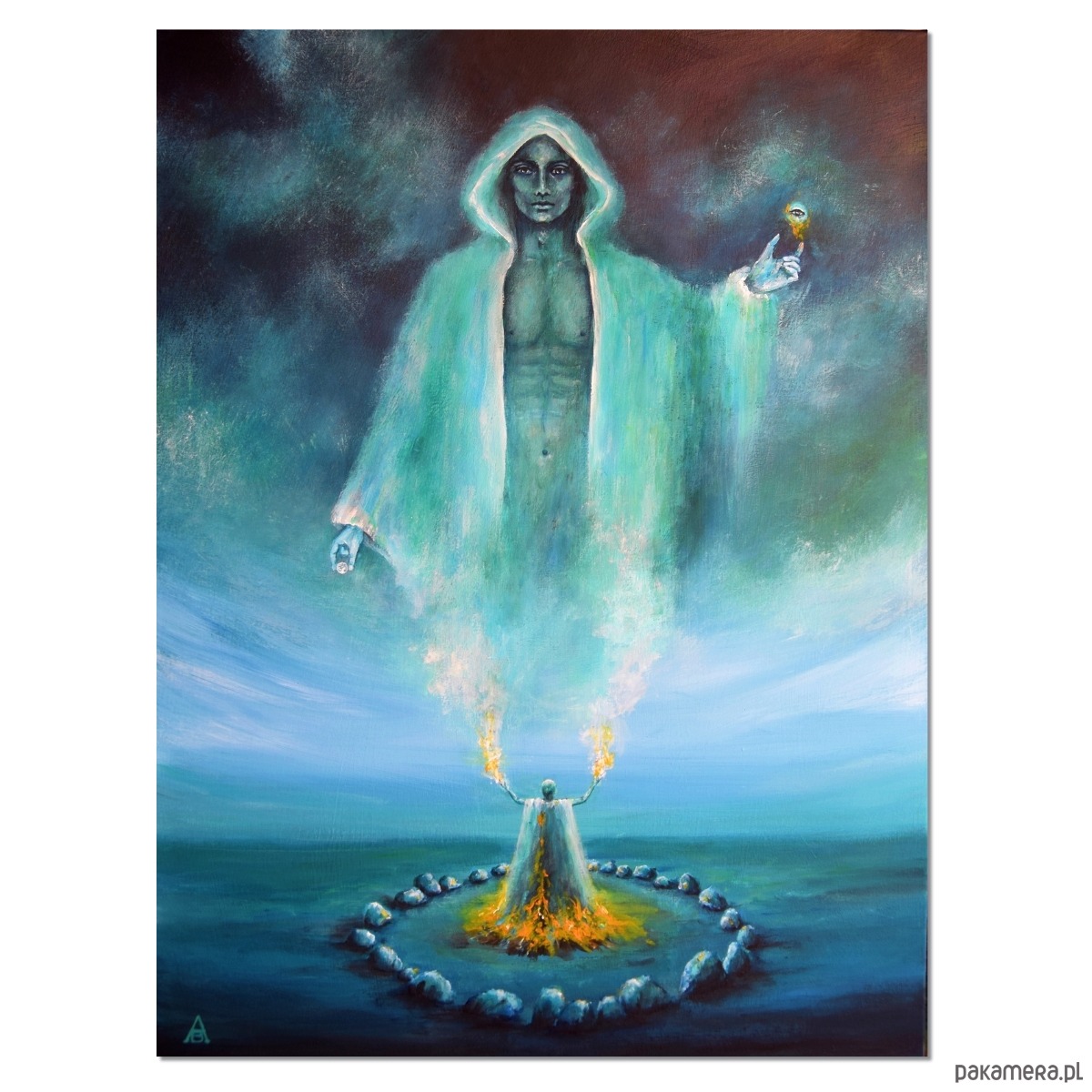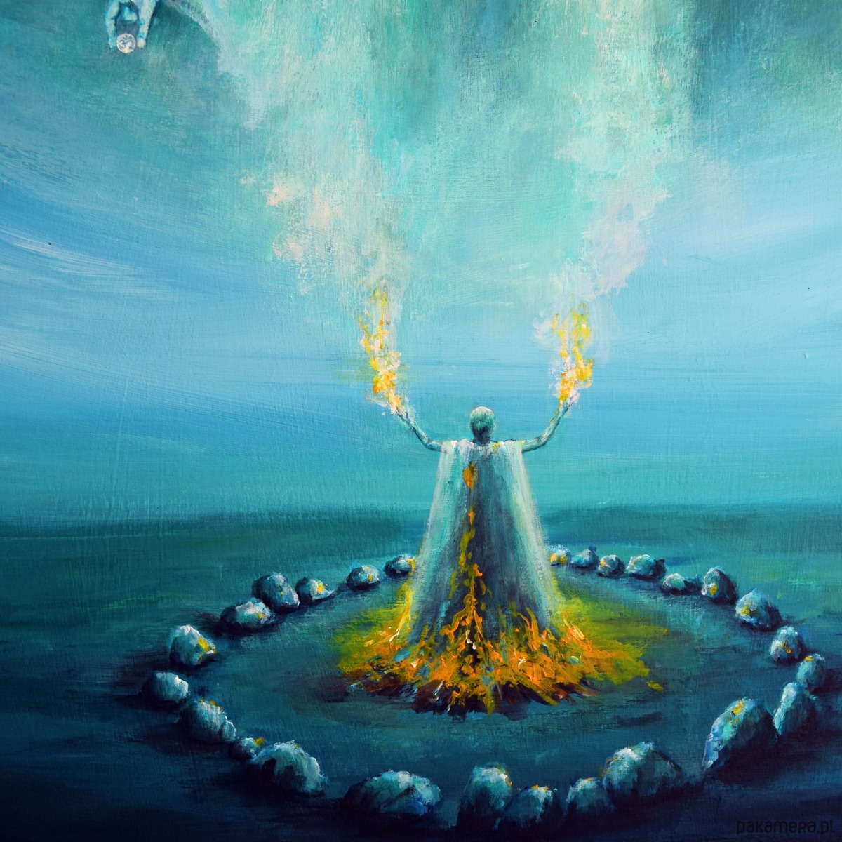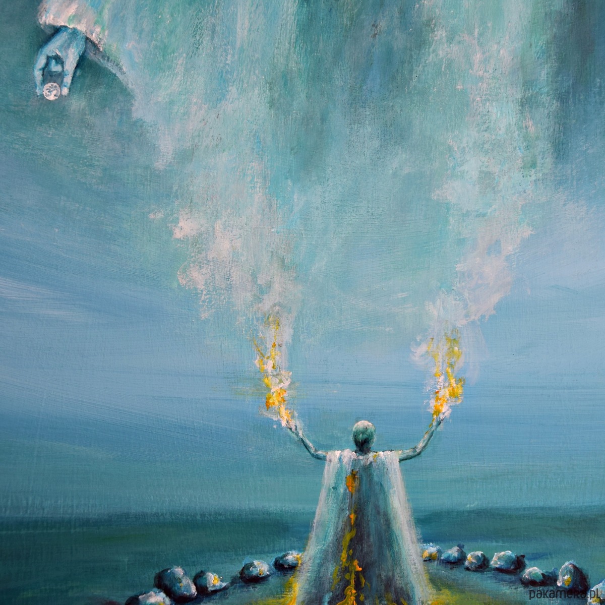 Obraz malowany w technice akrylowej, z serii inspirowanej nurtem realizmu magicznego/ surrealizmu.