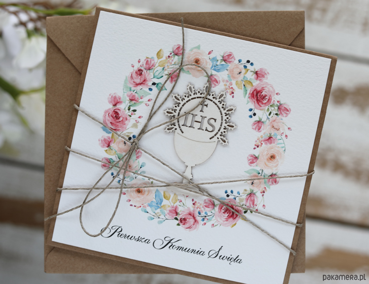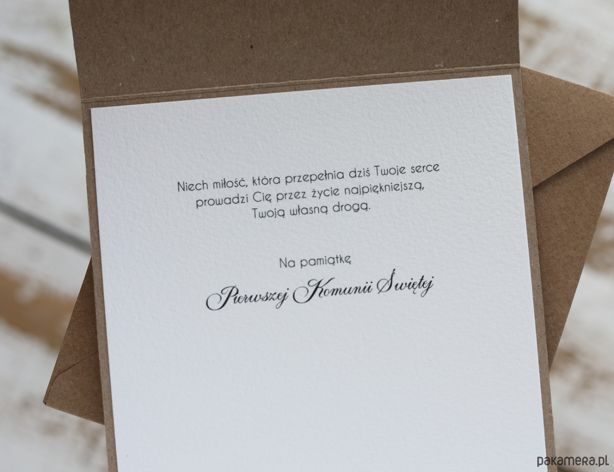 Stylowa, elegancka, wyjątkowa i oryginalna kartka komunijna wykonana z najwyższej jakości materiałów.