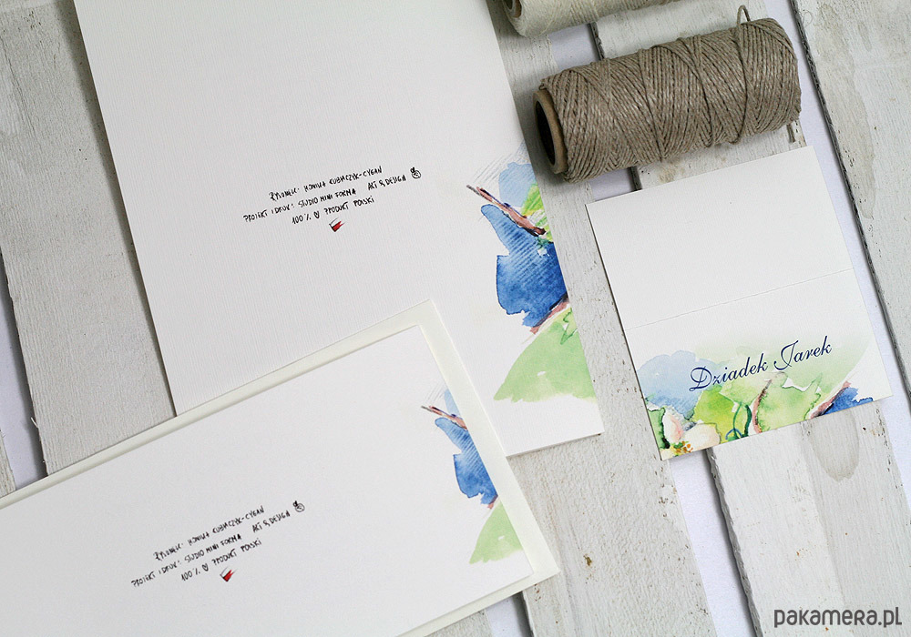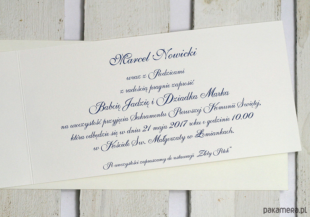 Parametry: - papier BIAŁY faktura prążek (240 gram), wymiary 10X20 cm (po złożeniu) KOPERTA w kolorze ecru.