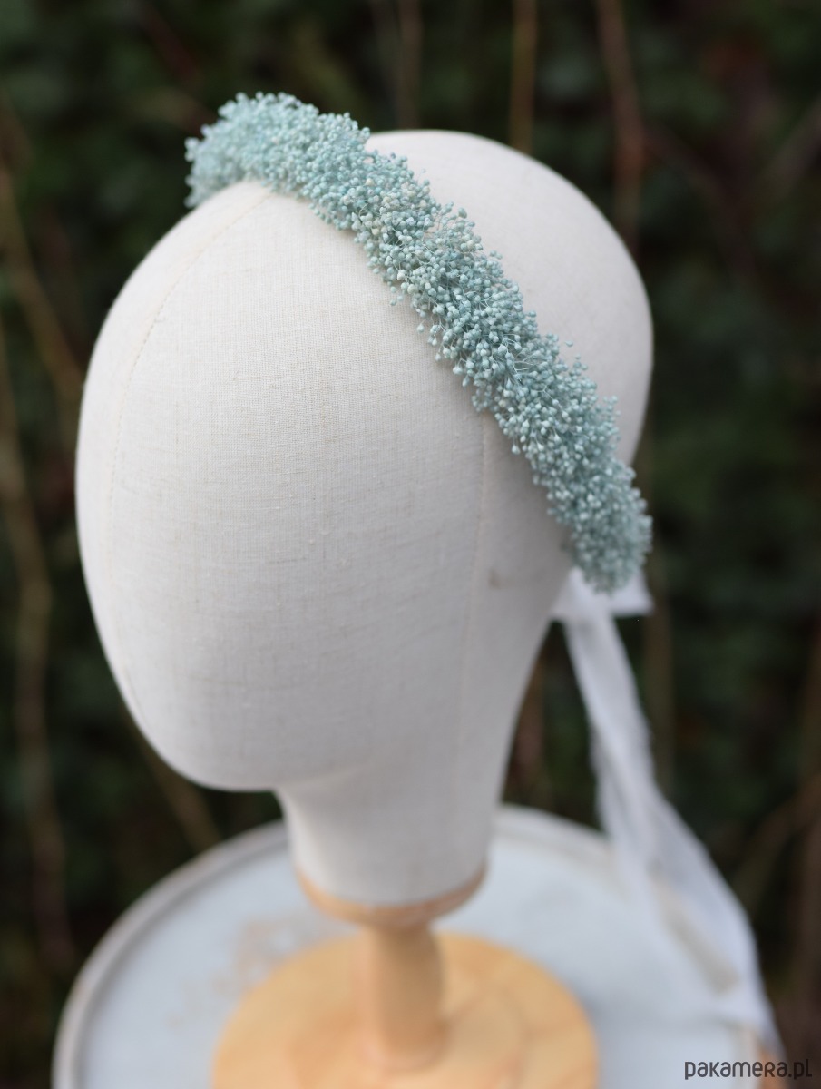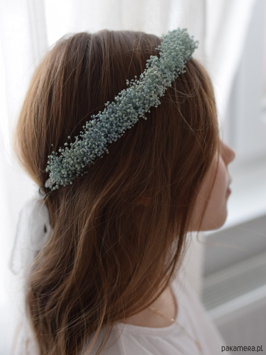 Komunijny Wianek na głowę z niebieskiej gipsówki