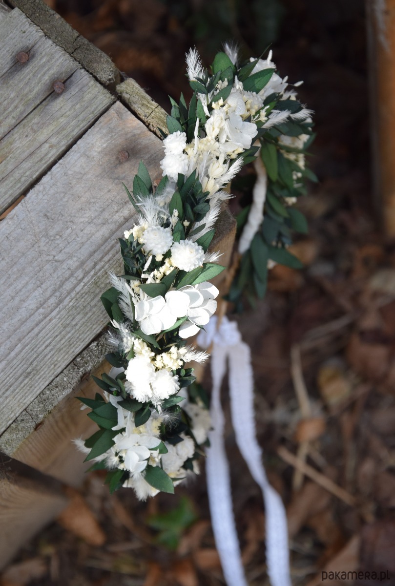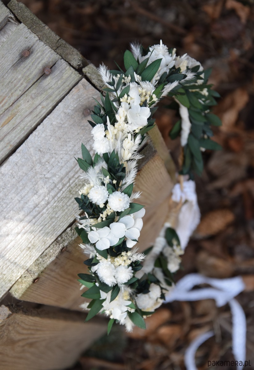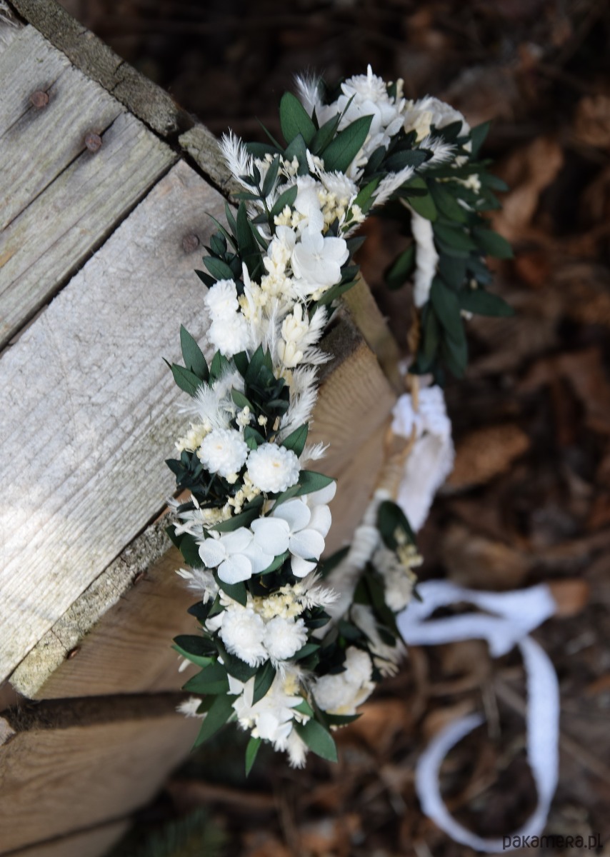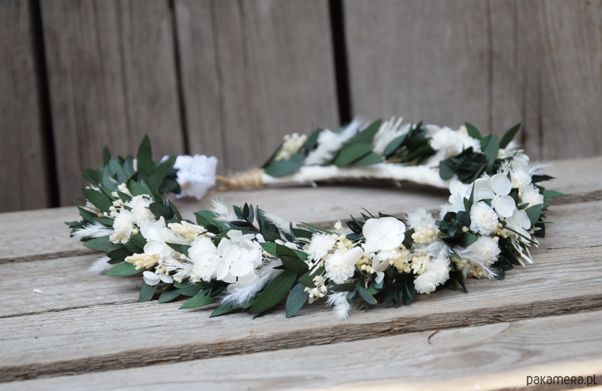 Delikatny, wianek na głowę z suszonych i stabilizowanych roślin to idealny dodatek do stylizacji Panny młodej,druhny lub małej dziewczynki na komunię.