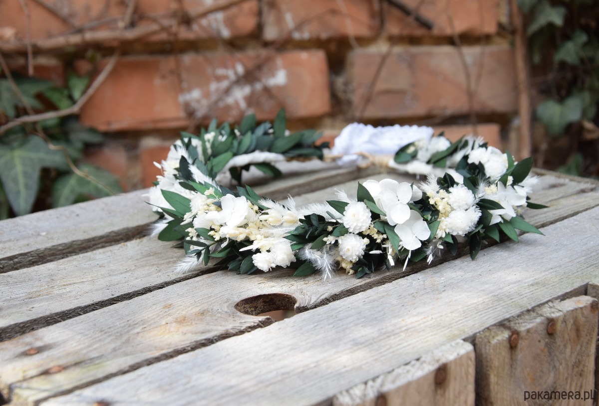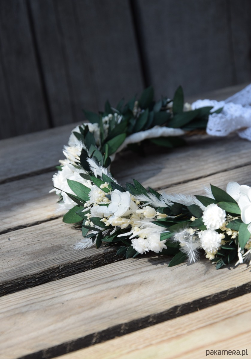 Komunijny wianek na głowę z stabilizowanych i suszonych kwiatów