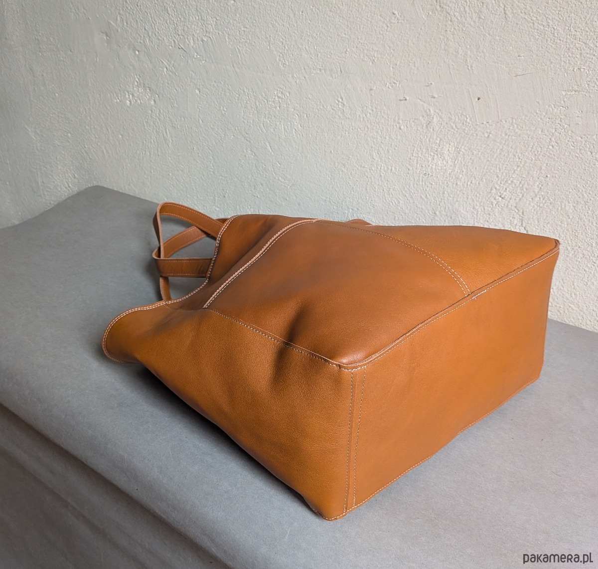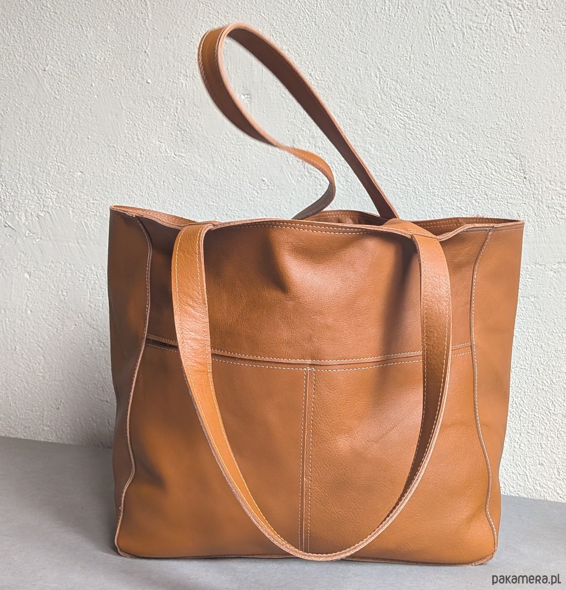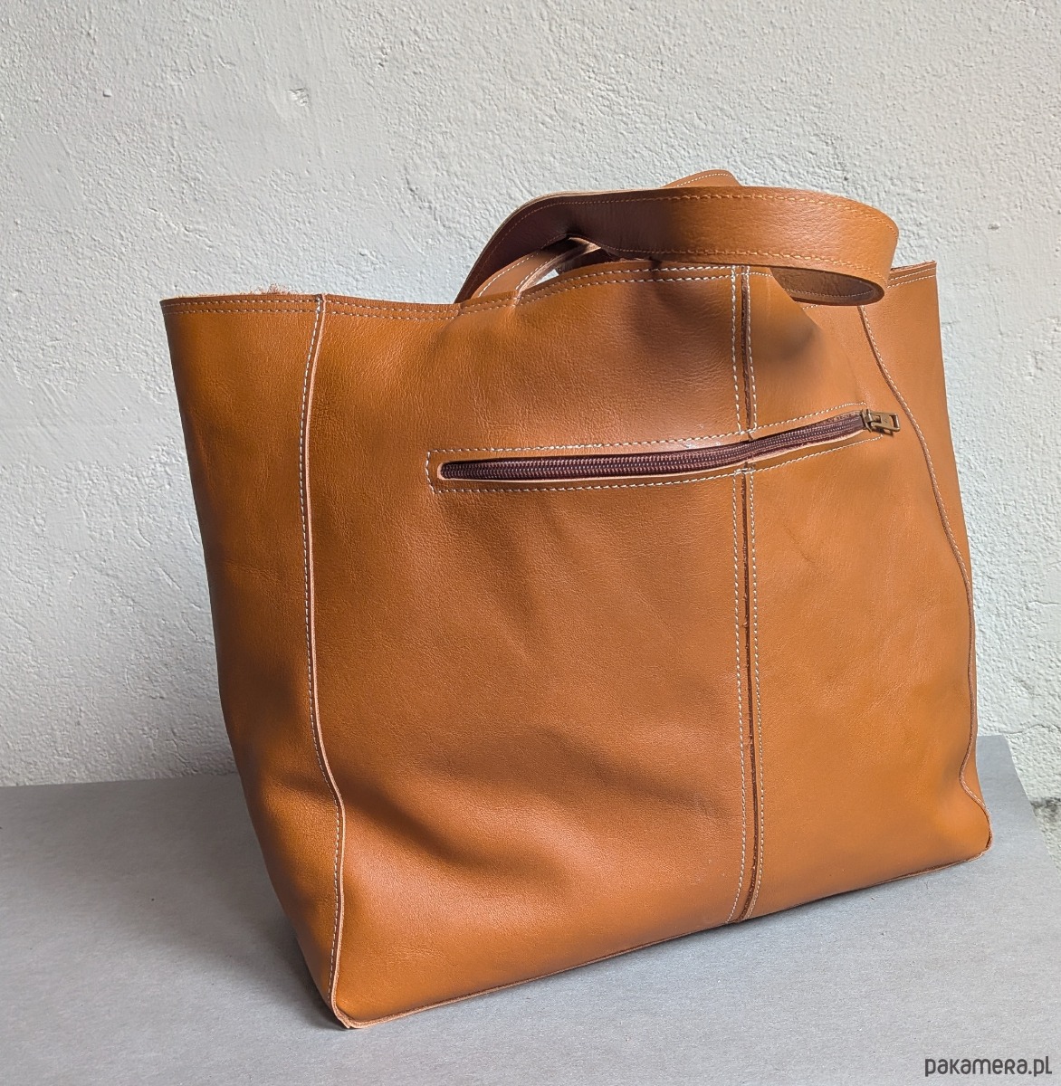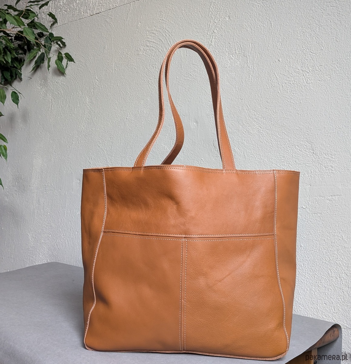 Koniakowa skórzana torba z przeszyciami