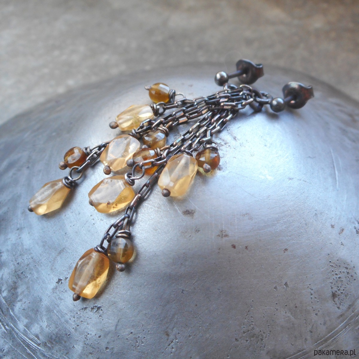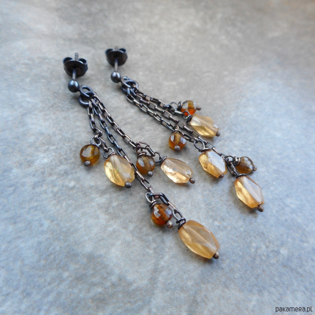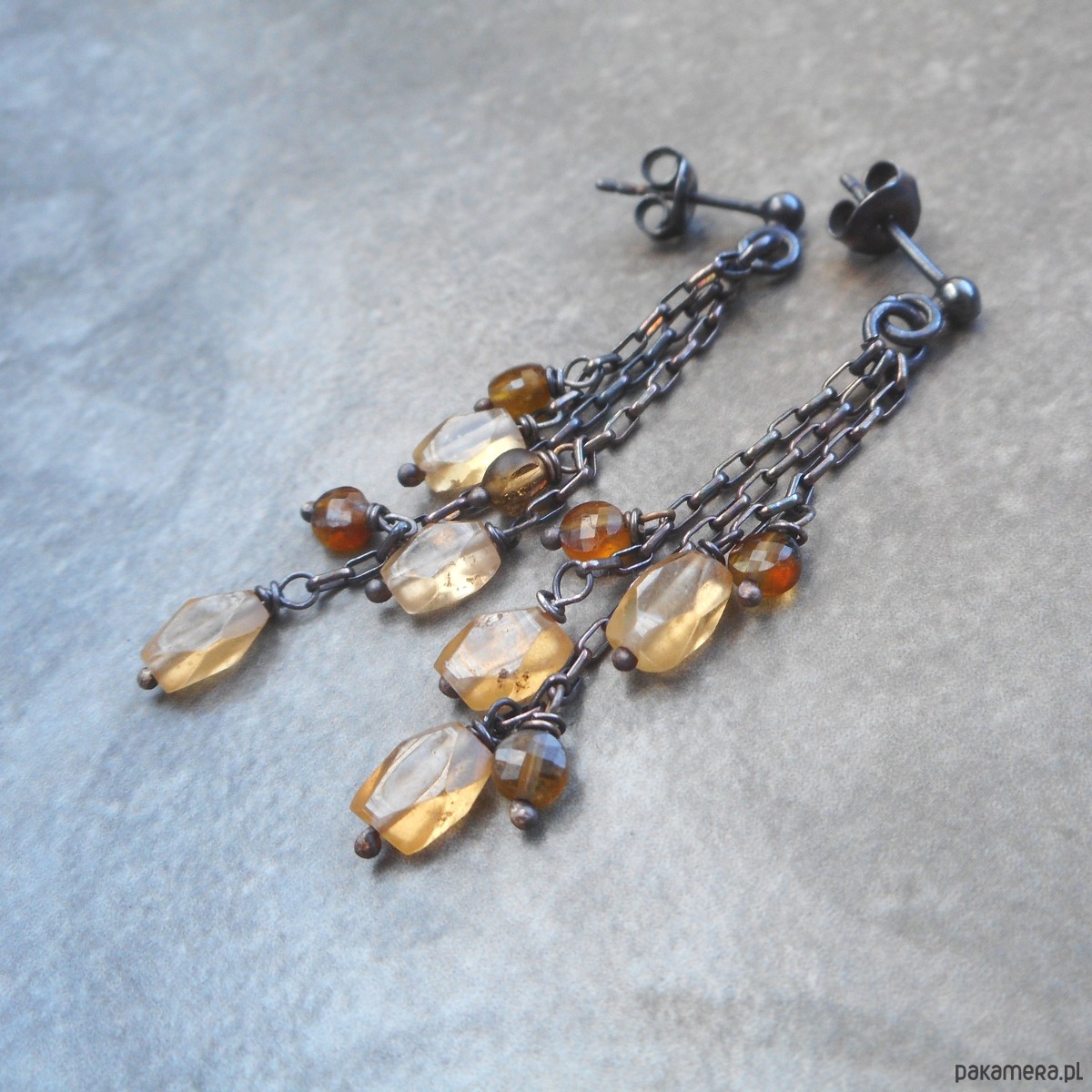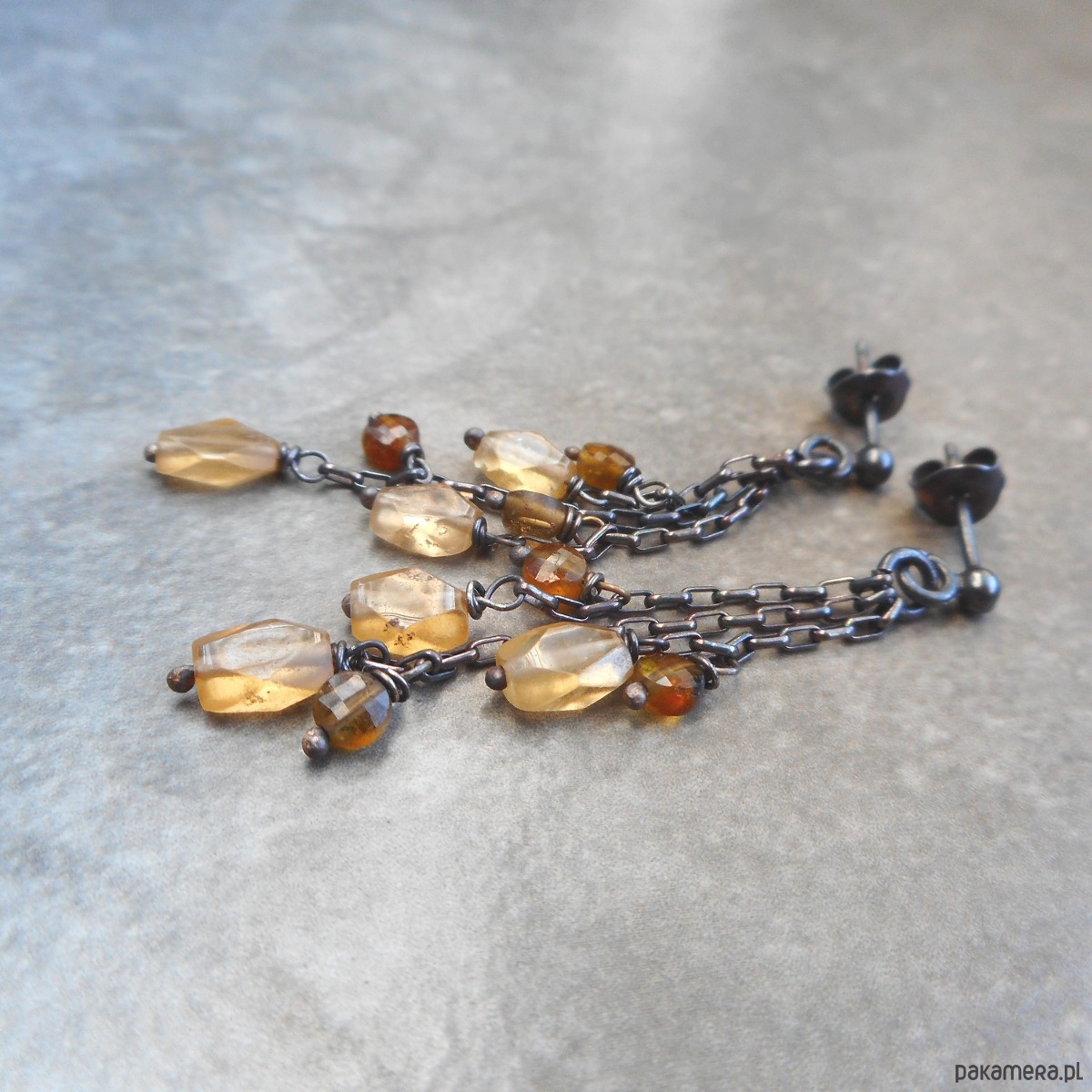Zwiewne kolczyki z kamieni naturalnych i szlachetnego srebra; delikatne i lekkie, w formie gałązek ozdobionych drobnymi minerałami.