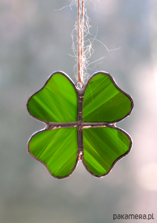Czterolistna koniczyna witraż - zawieszka na naturalnym sznurku.