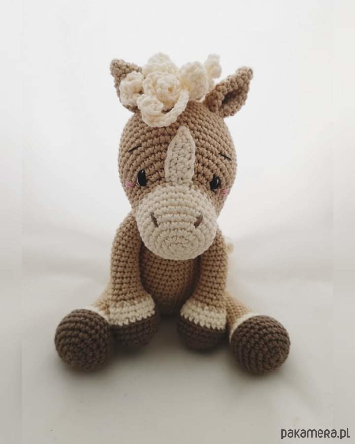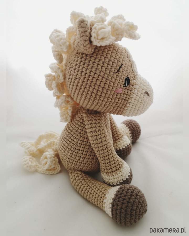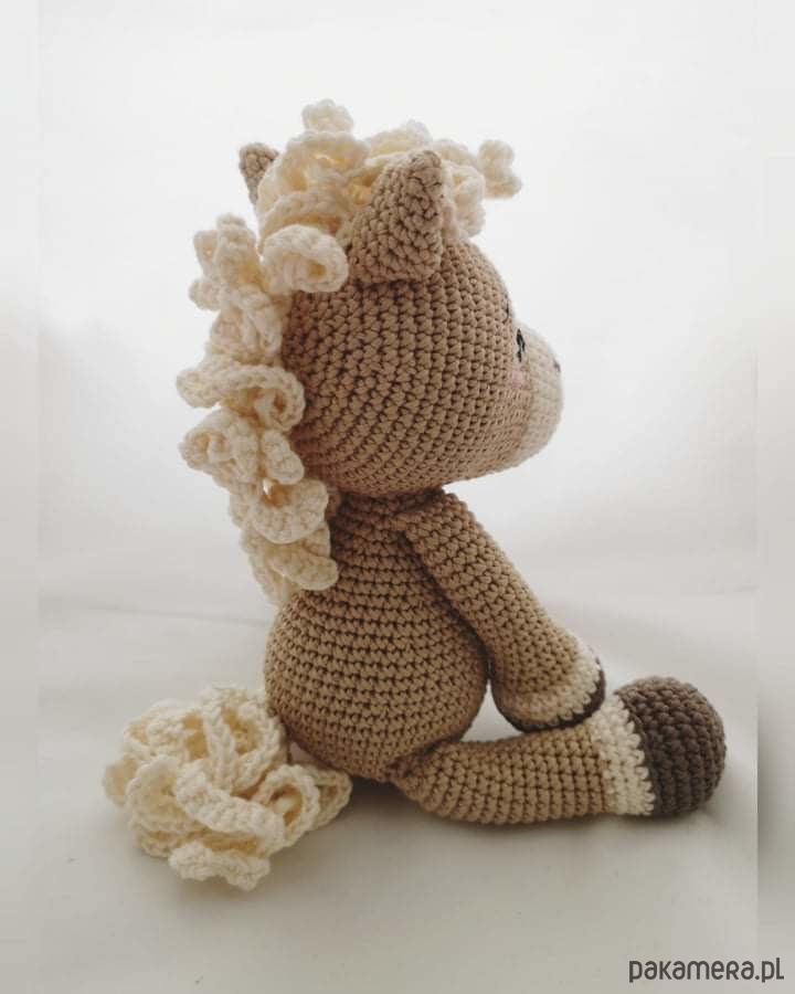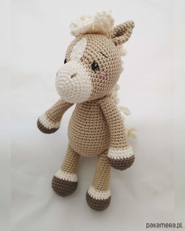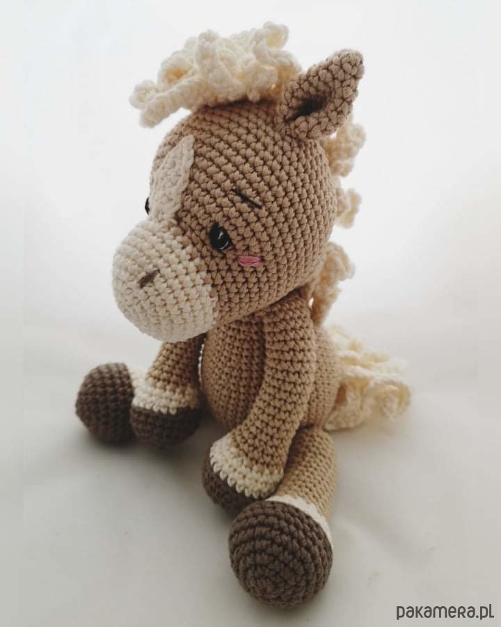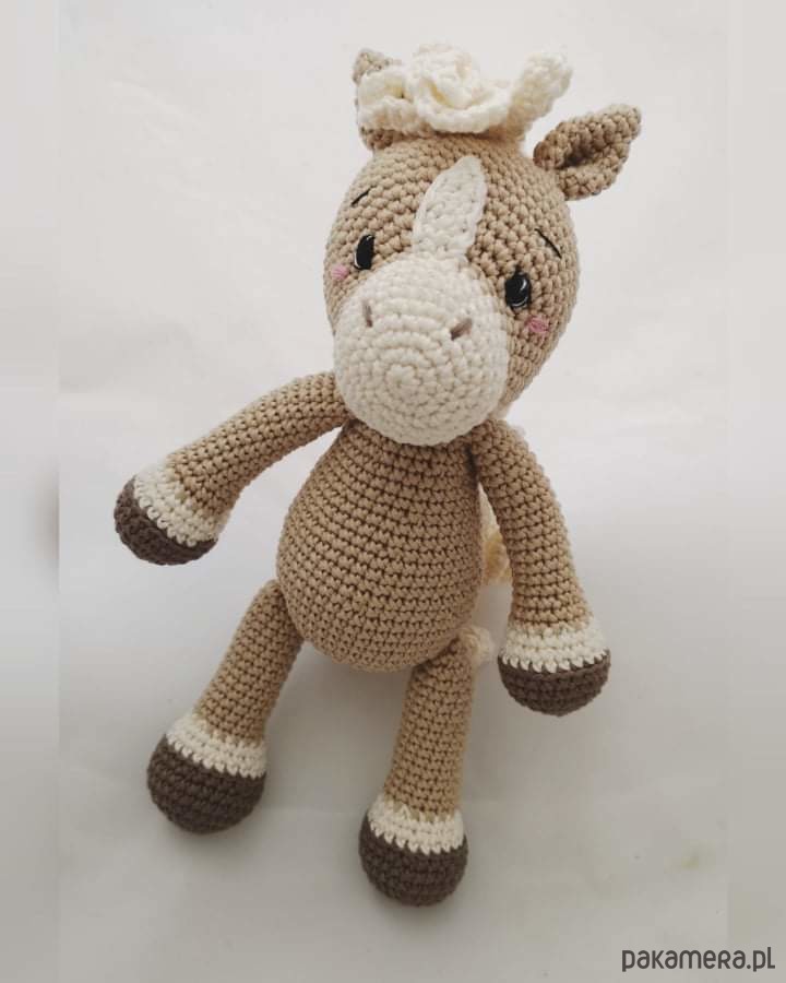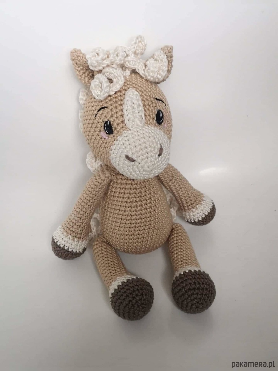 Ręcznie wykonany na szydełku koń Mustang techniką amigurumi.