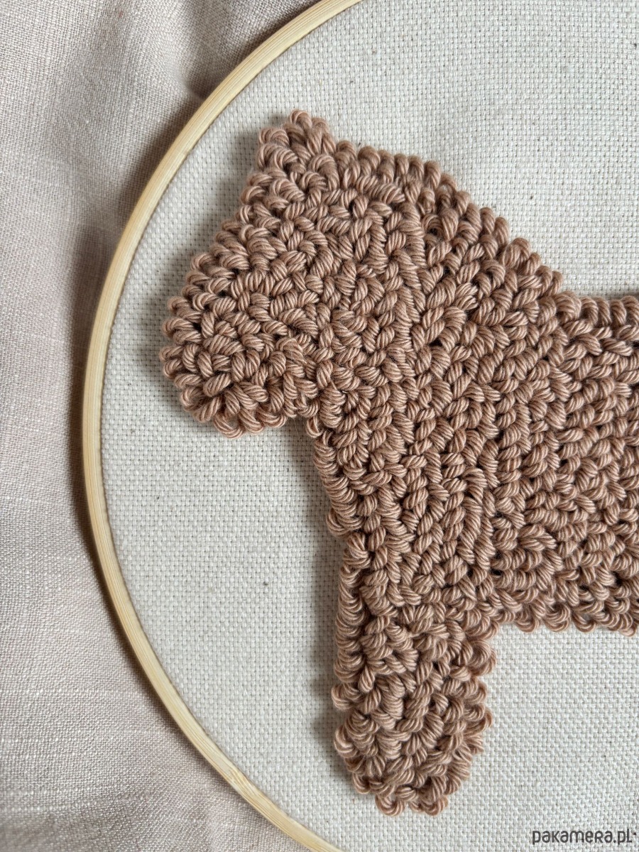 Miękka, wypukła struktura włóczki tworzy prostą formę konika – inspirowaną spokojem, naturą i dziecięcymi wspomnieniami.