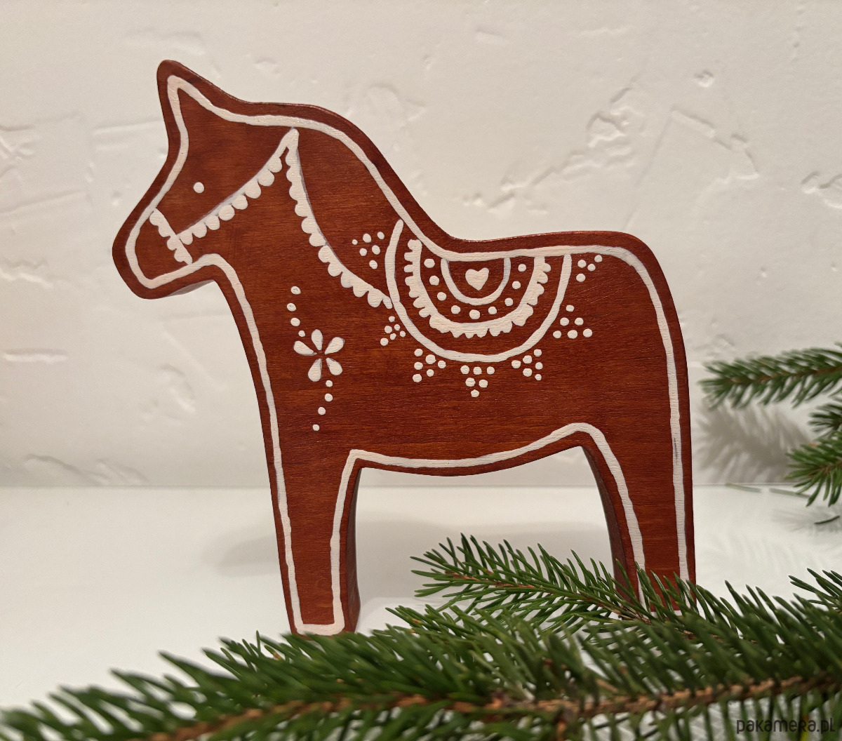 Uroczy drewniany konik , wyglądający smakowicie niczym świąteczne pierniczki. Konik wykonanay z drewna olchowego, ręcznie wycinany, malowany, zabezpieczony lakierem akrylowym. Wspaniale prezentuje się w stadzie :)