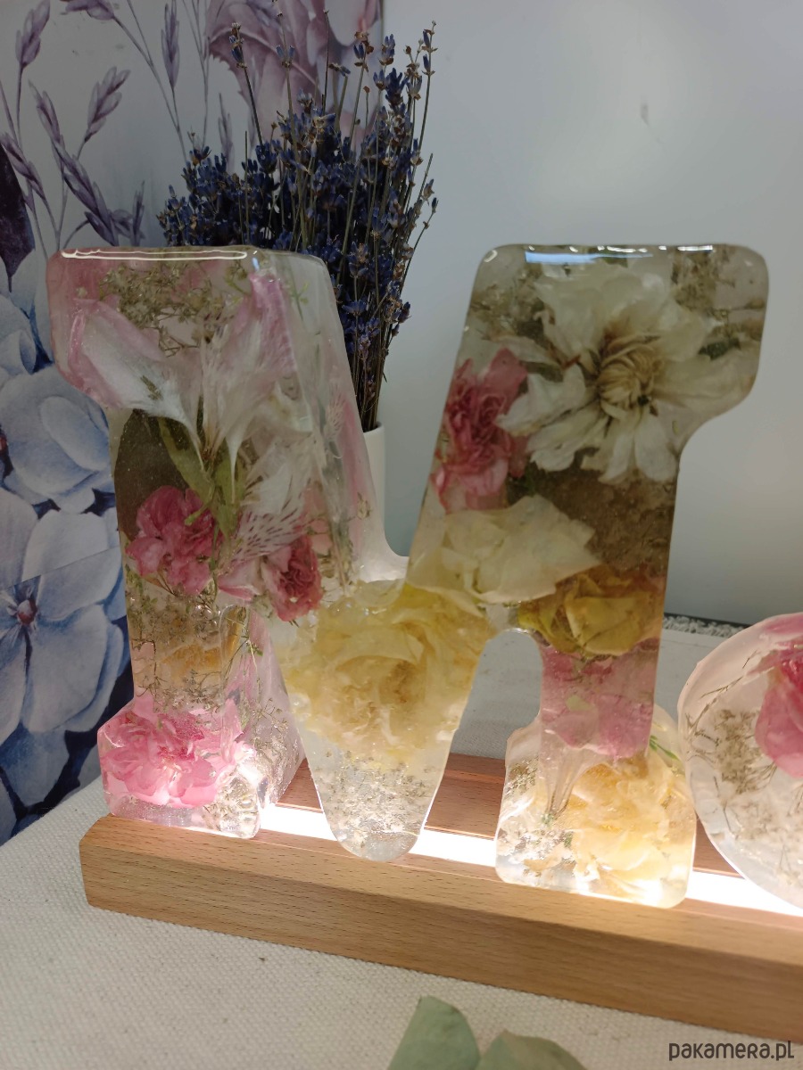 - Konserwacja bukietów w postaci pamiątek z autorskimi kompozycjami kwiatowymi utrwalonymi w żywicy.