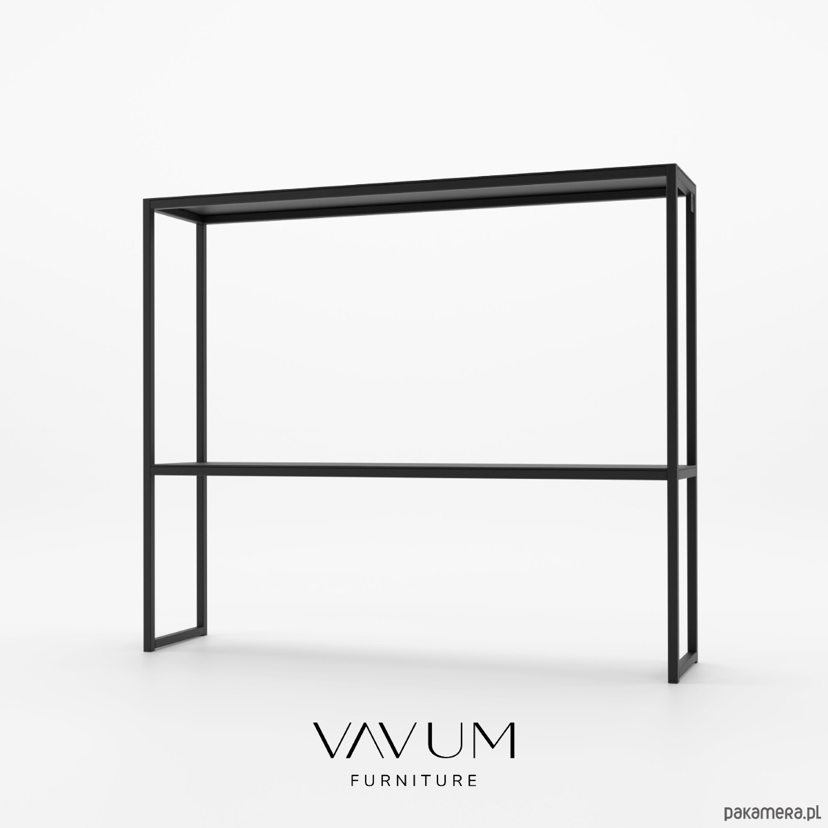 Smukła, geometryczna forma z dwiema półkami oferuje przestrzeń na dekoracje, rośliny czy książki, nie przytłaczając wnętrza. Konsola doskonale sprawdzi się w przedpokoju, salonie, gabinecie czy sypialni, dopasowując się do różnych stylów aranżacji. Stal malowana proszkowo zapewnia trwałość i łatwe czyszczenie. Fondo dostępna jest w klasycznej czerni i bieli, z opcją wykonania w innym rozmiarze lub kolorze.