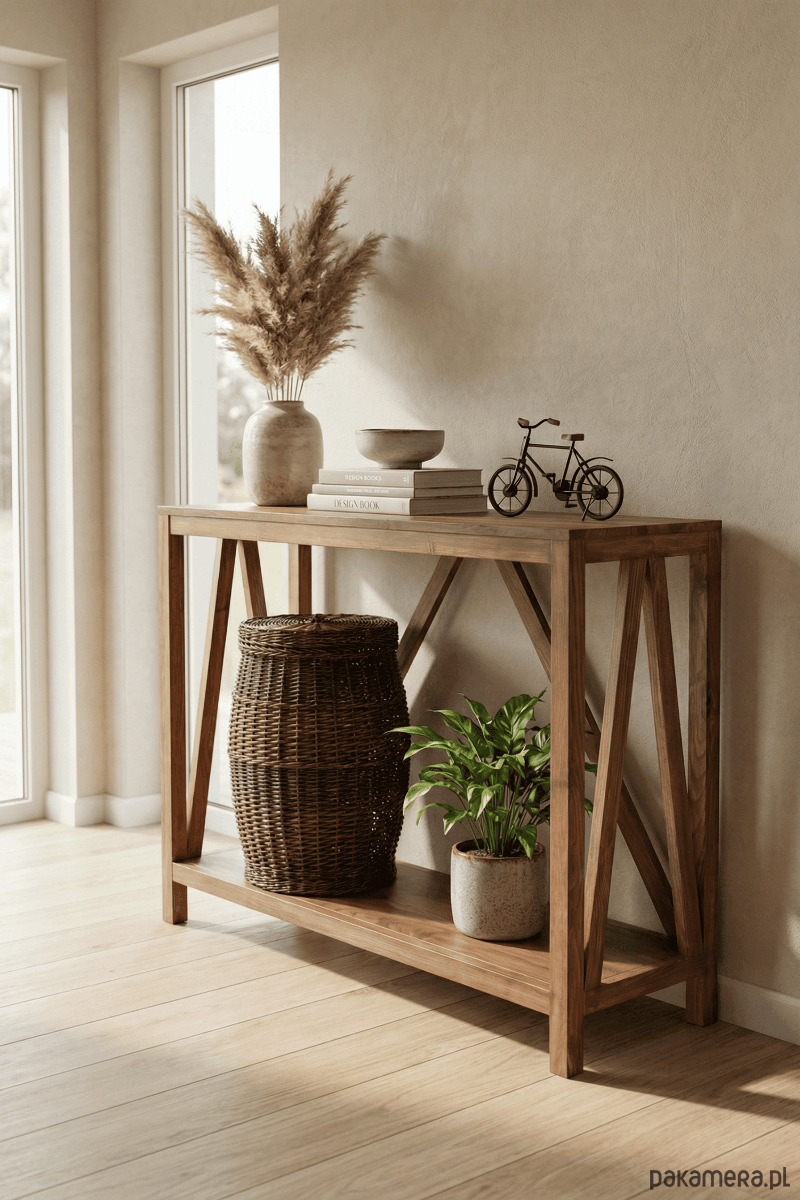 Drewniana Konsola z Półką – Minimalizm i Funkcjonalność