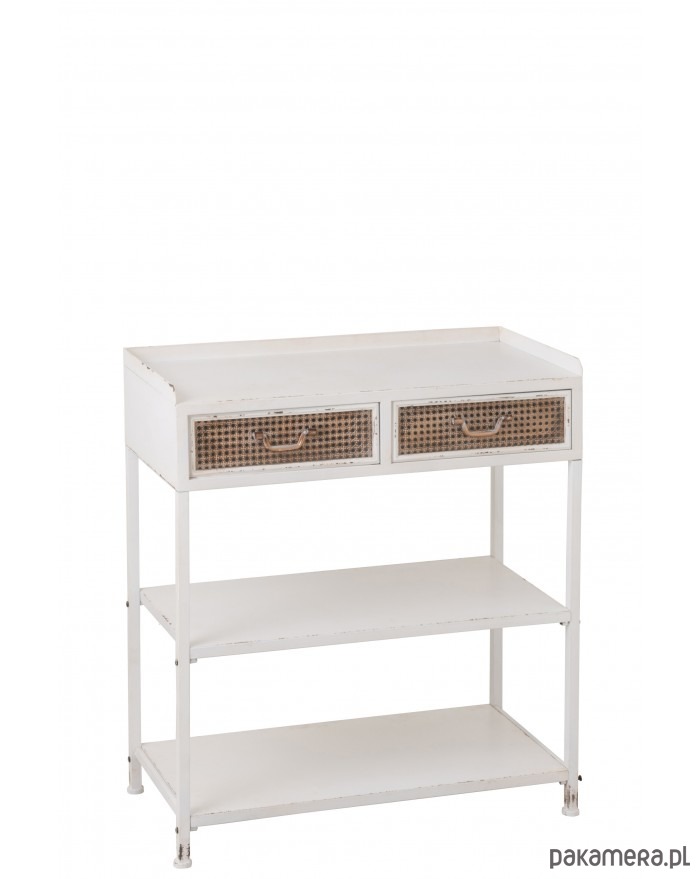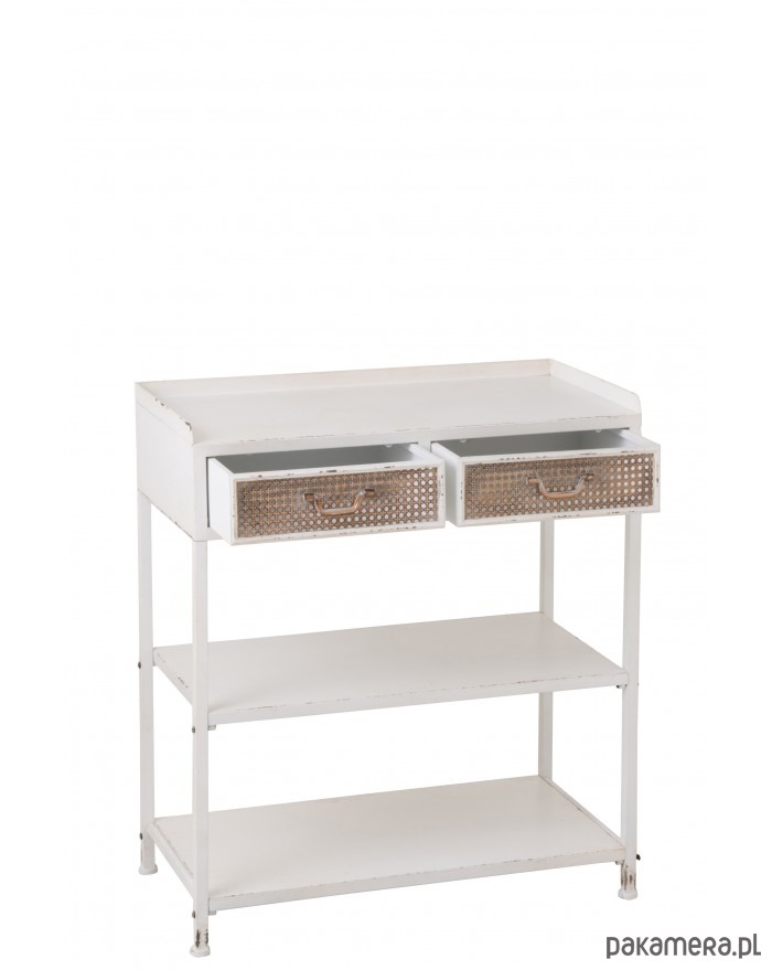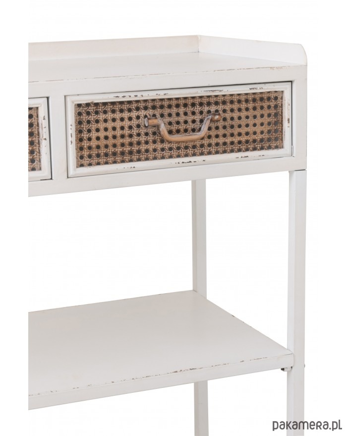 Oryginalna konsola wykonana w całości z metalu. Przepiękna! Wykonanie na najwyższym poziomie. Posiada półki oraz szuflady z motywem plecionki wiedeńskiej. Celowo nieidealna.