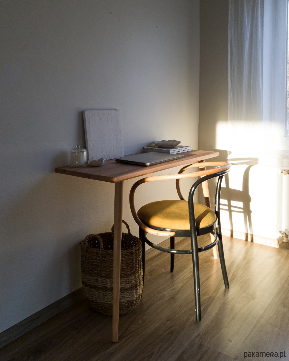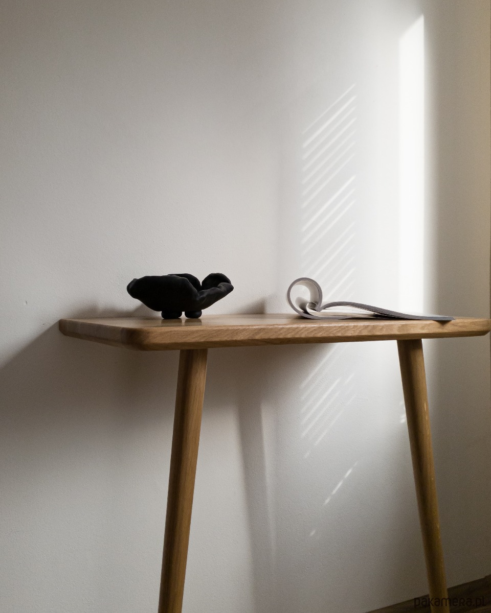 Konsola naszej marki WYSTRUGANY to piękno w swojej prostocie. Sfrezowane brzegi blatu nadają jej delikatności. Podparta dwiema stabilnymi stożkowymi nogach oraz przymocowana do ściany niewidocznymi wspornikami. Wszystko po to by Twoje wnętrze nabrało subtelności. Sprawdzi się jako konsola, toaletka a nawet biurko.