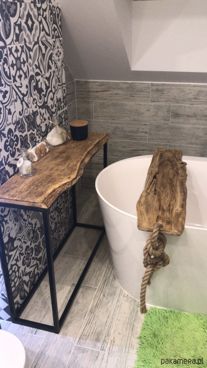 Połączenie drewna z metalowym stelażem nadaje wnętrzu mocnego charakteru a także industrialnego stylu.