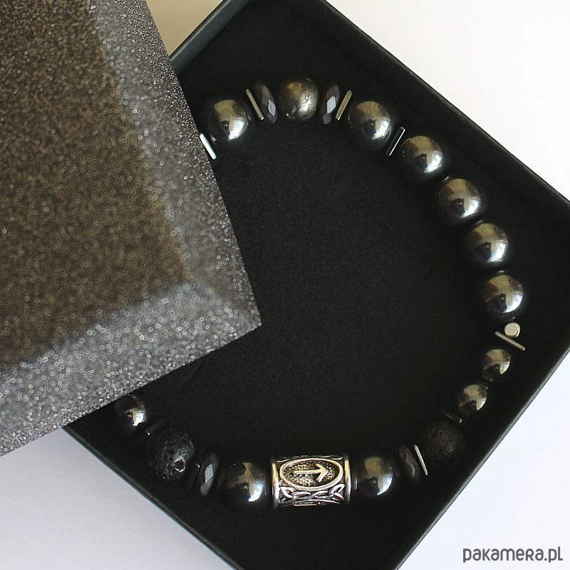 Konstruktywne działanie - runa tiwaz hematyt lawa wulkaniczna