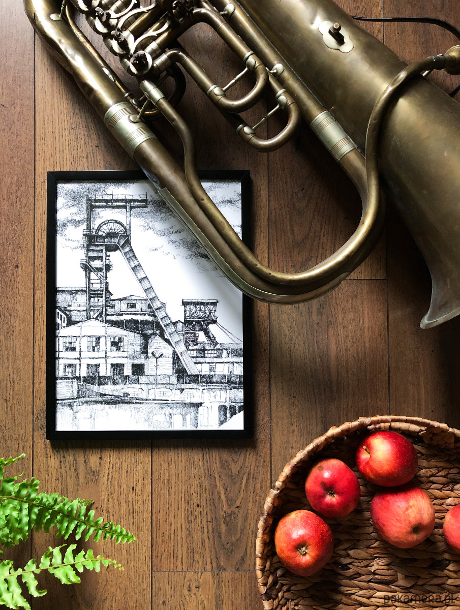 Wydruk sygnowany imieniem i nazwiskiem autor. Grafika oprawiona jest w czarną drewnianą ramę. Produkt gotowy do zawieszenia.