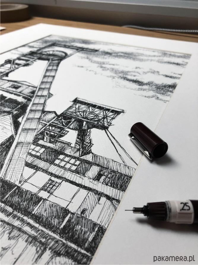 Wydruk autorskiej grafiki wykonanej rapidografem i tuszem.