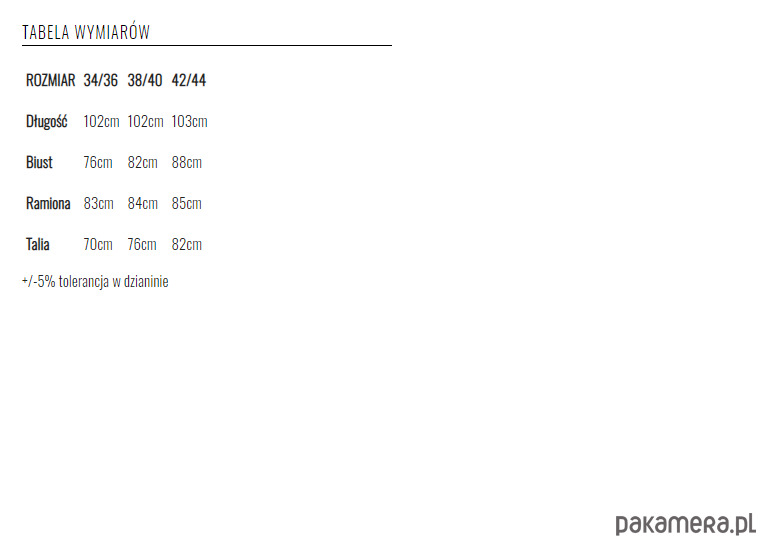 Modelka ma 170 cm wzrostu i nosi rozmiar 36