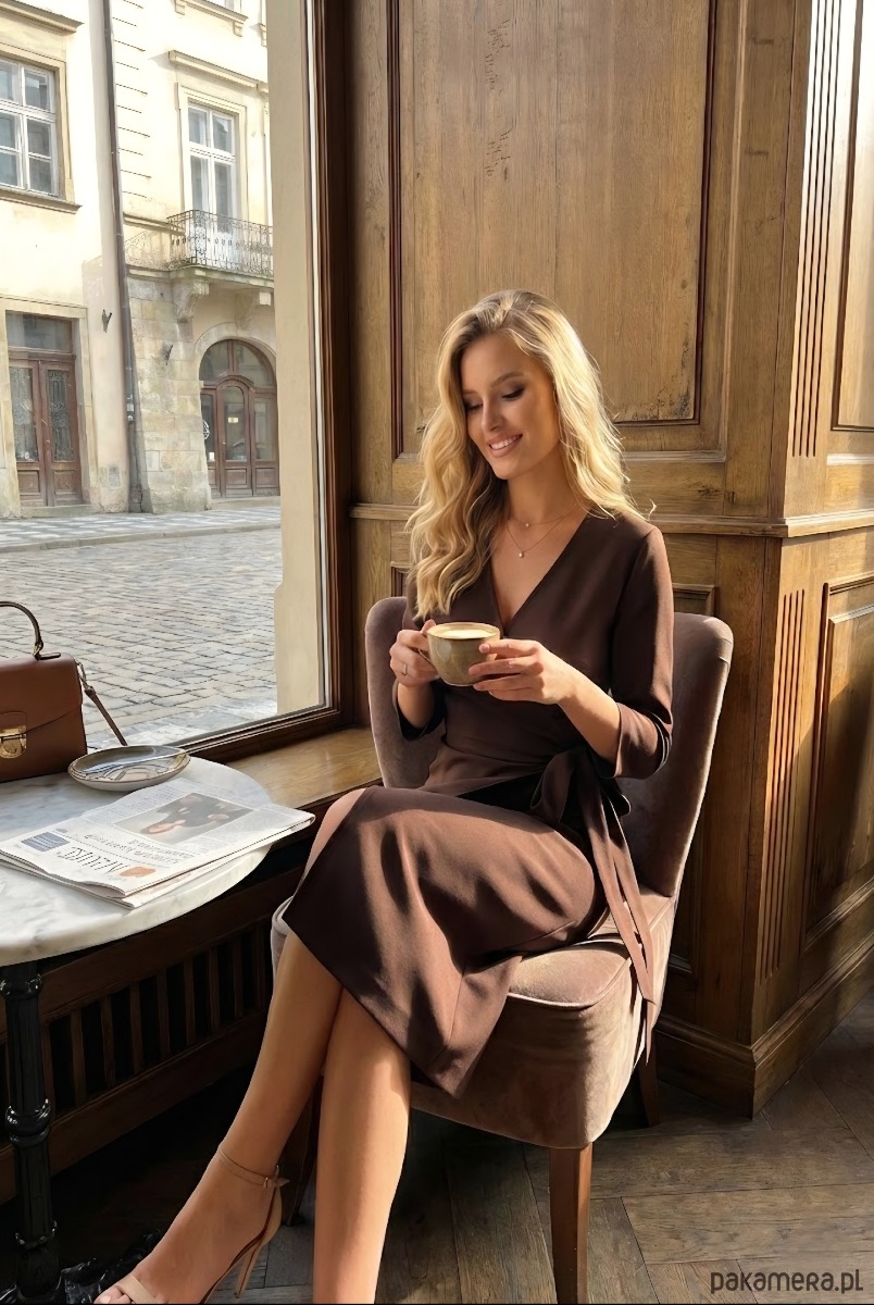 Kopertowa sukienka - SUK206 brąz