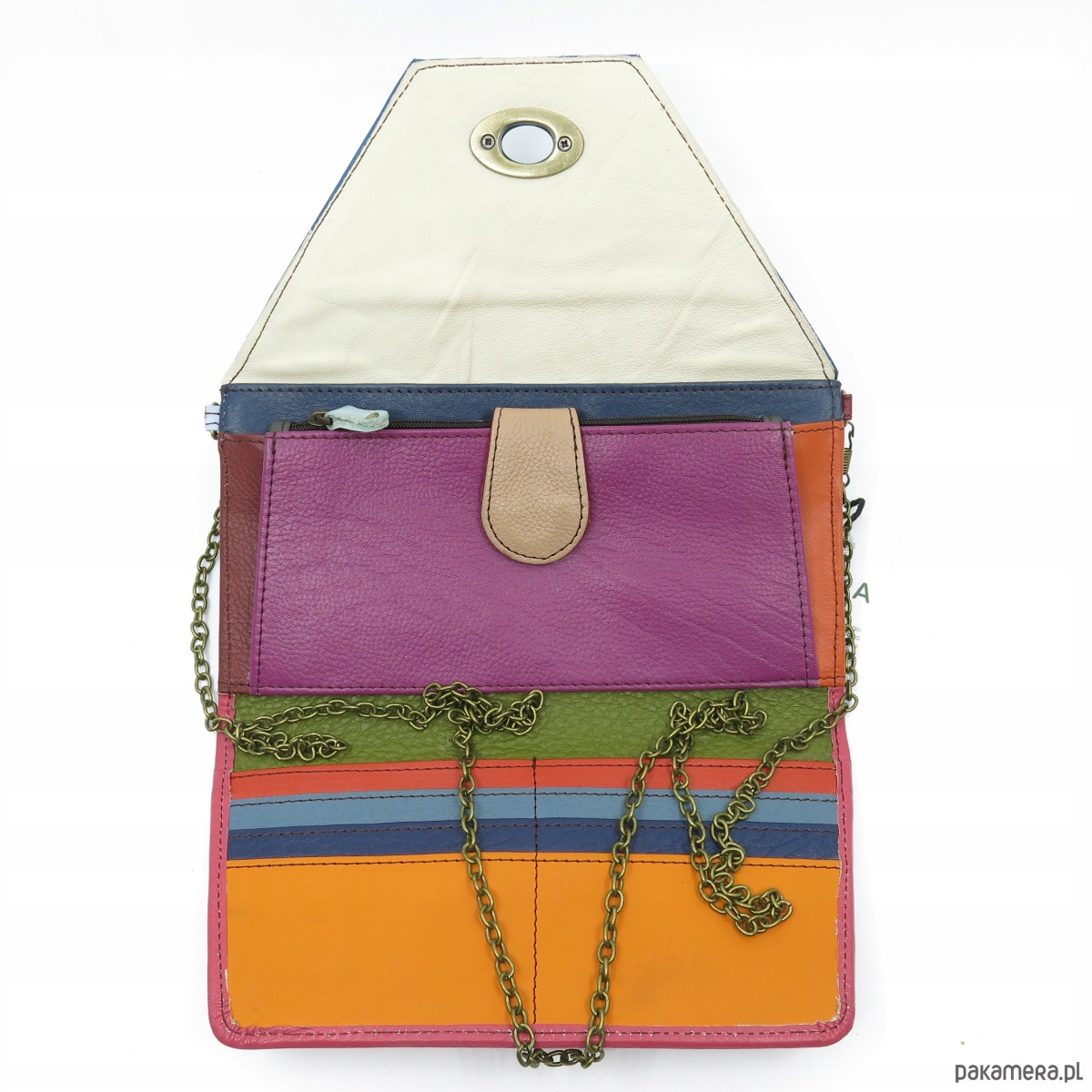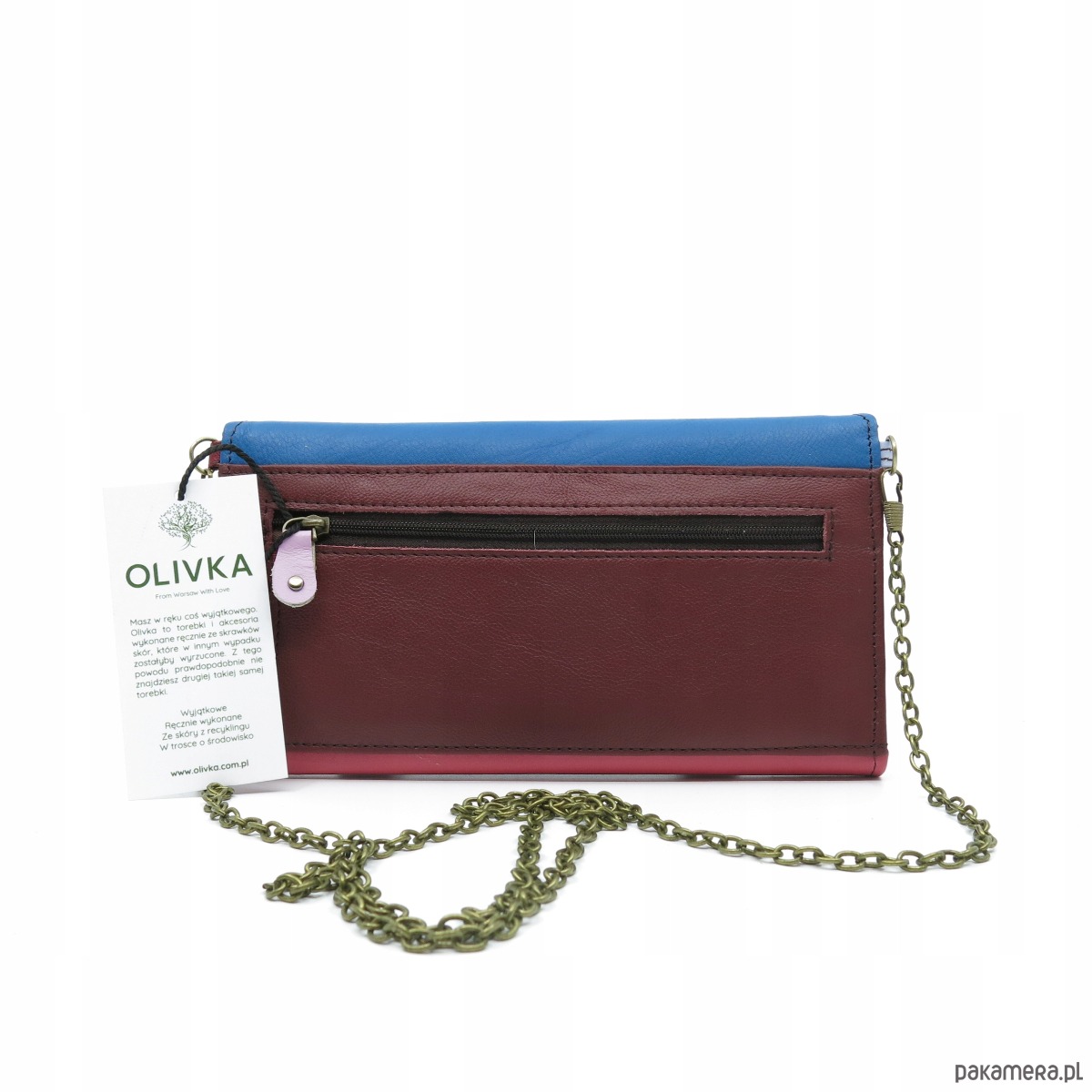 Wyjątkowy model portfela na łańcuszku. Możesz go nosić jak kopertówkę lub na pięknym, łańcuszkowym pasku.