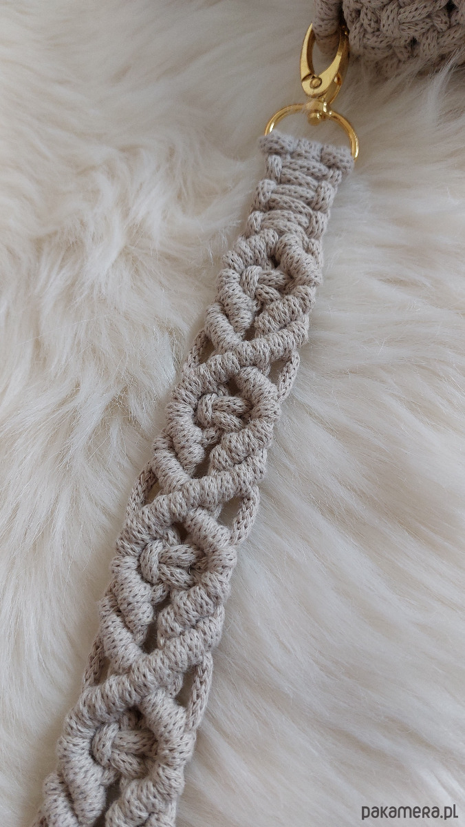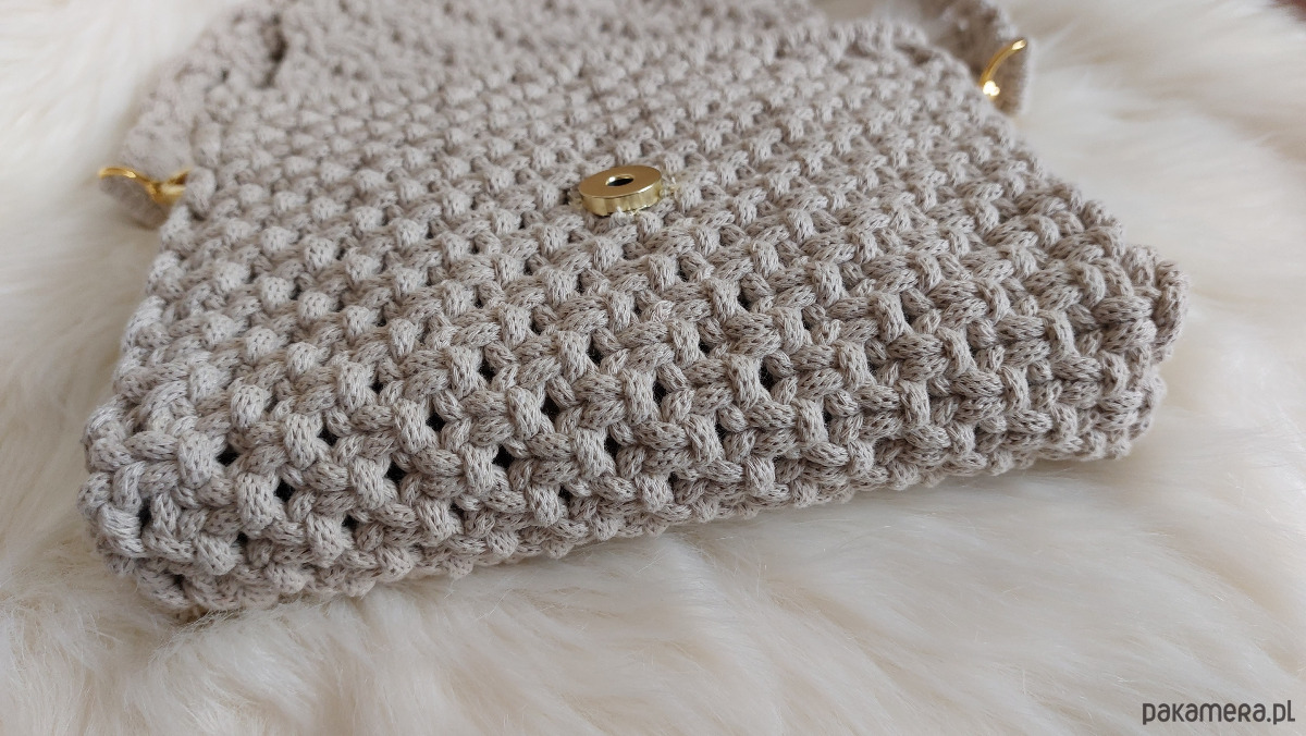 Ręcznie wykonana kopertówka handmade to idealny dodatek na wiosnę i lato. Wykonana z bawełnianego sznurka 5 mm w piaskowym kolorze, łączy naturalny styl z elegancją. Torebka posiada magnetyczne zapięcie oraz złote karabińczyki, które nadają jej subtelnego charakteru. Wymiary 16 × 22 × 4 cm zapewniają miejsce na najpotrzebniejsze drobiazgi. Pasek o długości 100 cm może zostać wykonany w innej długości na życzenie. Istnieje również możliwość wykonania kopertówki w innym kolorze; czas realizacji zamówienia wynosi 8–10 dni roboczych.