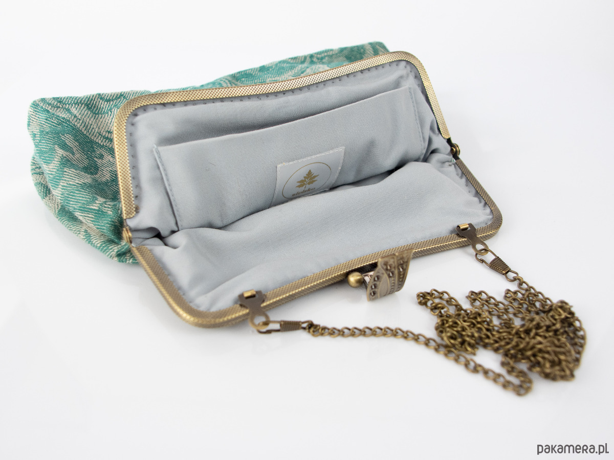 Każda kopertówka powstaje przy zachowaniu najwyższej staranności rzemieślniczej, zarówno w wykończeniu materiału, jak i w szyciu oraz montażu elementów ozdobnych. Zapięcie w kolorze mosiądzu, subtelnie zdobione, nadaje eleganckiego charakteru całej formie i zapewnia wygodne korzystanie z torebki.