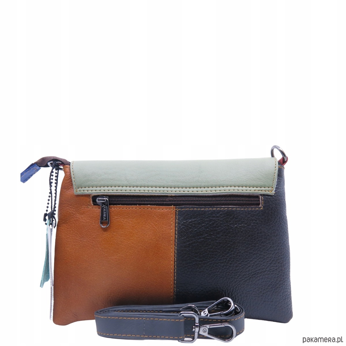 Kopertówka skórzana unikatowa torebka damska handmade upcycling OLIVKA